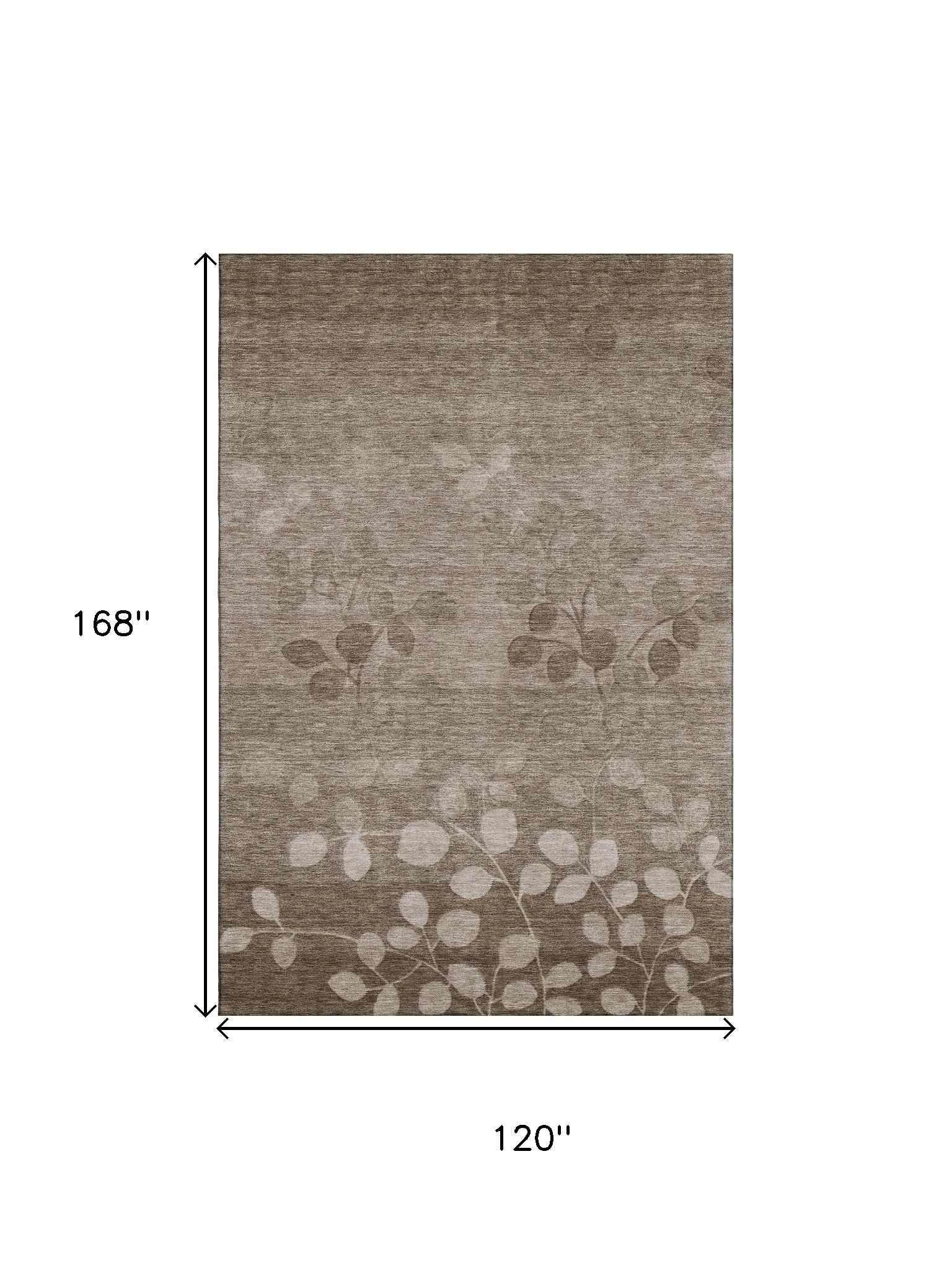 Set an inviting tone in your space with this 10-foot x 14-foot taupe and beige floral washable area rug with uv protection. Ideal for spaces with kids and pets, this rug is stain resistant to help repel dirt and spilled liquids. Built to last, this rug crafted from polyester fibers is known for its durability and long lasting appeal. Rugs are a great way to showcase your style, hide imperfections, warm your home and reduce noise. This larger sized, transitional styled rug is ready to create a focal point or statement piece in your room. 120.00-inch h x 168.00-inch w x 0.39-inch d.