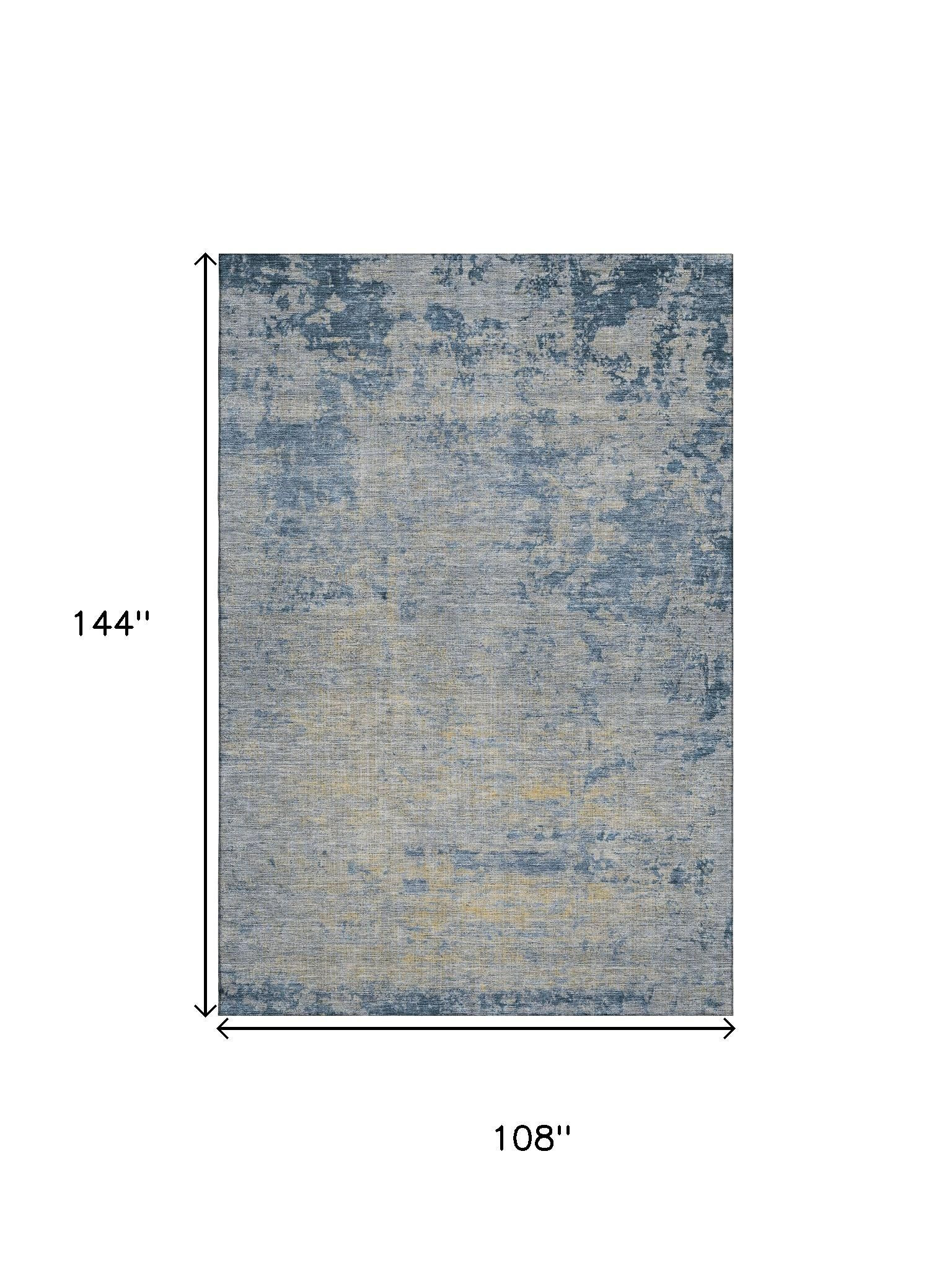 This 9-foot x 12-foot navy blue and beige abstract washable area rug with uv protection, is a great way to add warmth to a room. Ideal for spaces with kids and pets, this rug is stain resistant to help repel dirt and spilled liquids. Built to last, this rug crafted from polyester fibers is known for its durability and long lasting appeal. Rugs are a great way to showcase your style, hide imperfections, warm your home and reduce noise. This larger sized, transitional styled rug is ready to create a focal point or statement piece in your room. 108.00-inch h x 144.00-inch w x 0.39-inch d.