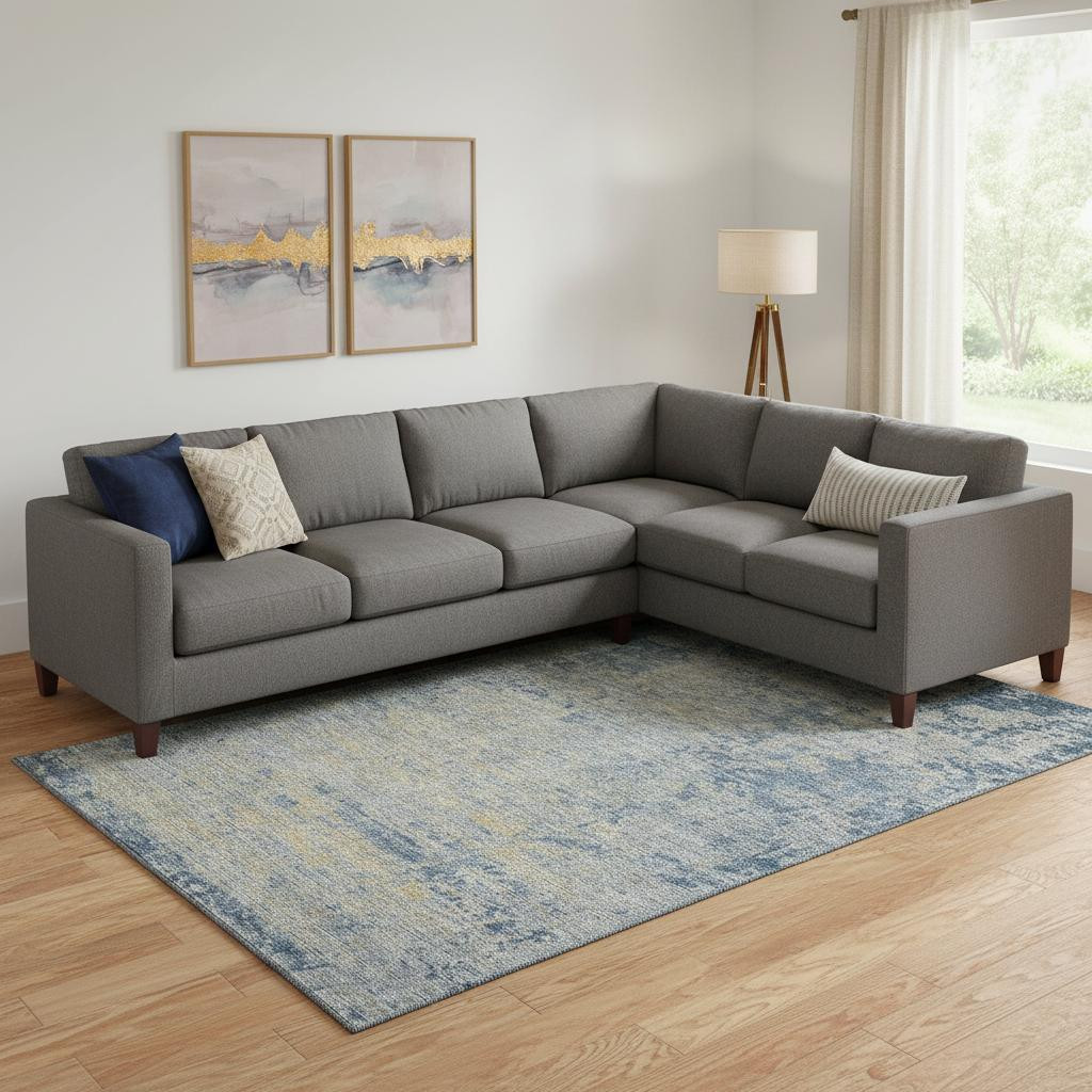 Add great coloration and comfortable texture to your space with this 10-foot x 14-foot navy blue and beige abstract washable area rug with uv protection. Ideal for spaces with kids and pets, this rug is stain resistant to help repel dirt and spilled liquids. Built to last, this rug crafted from polyester fibers is known for its durability and long lasting appeal. Rugs are a great way to showcase your style, hide imperfections, warm your home and reduce noise. This larger sized, transitional styled rug is ready to create a focal point or statement piece in your room. 120.00-inch h x 168.00-inch w x 0.39-inch d.