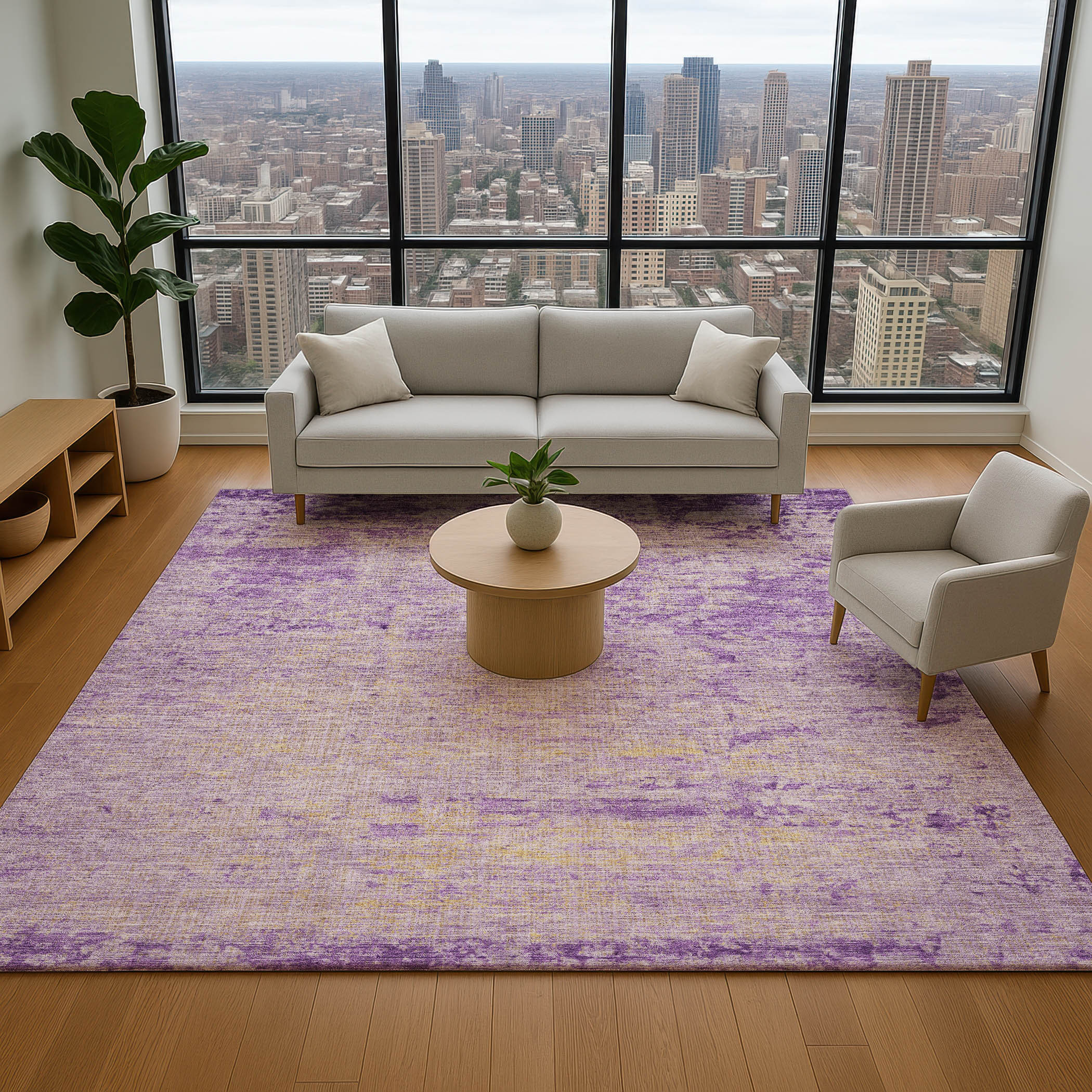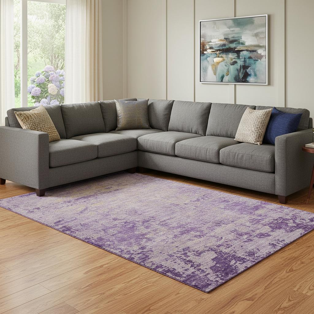 Set an inviting tone in your space with this 8-foot x 10-foot purple and beige abstract washable area rug with uv protection. Ideal for spaces with kids and pets, this rug is stain resistant to help repel dirt and spilled liquids. Built to last, this rug crafted from polyester fibers is known for its durability and long lasting appeal. Rugs are a great way to showcase your style, hide imperfections, warm your home and reduce noise. This larger sized, transitional styled rug is ready to create a focal point or statement piece in your room. 96.00-inch h x 120.00-inch w x 0.39-inch d.