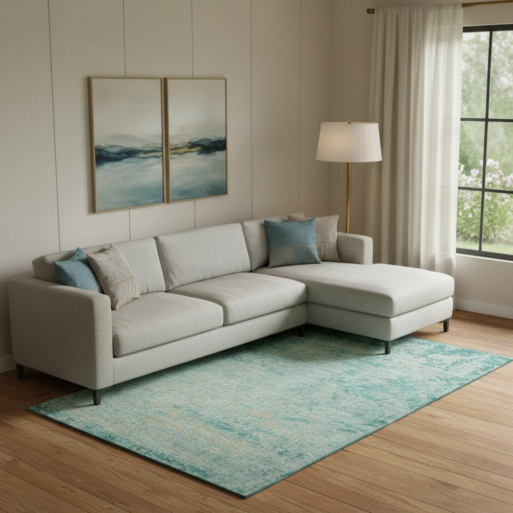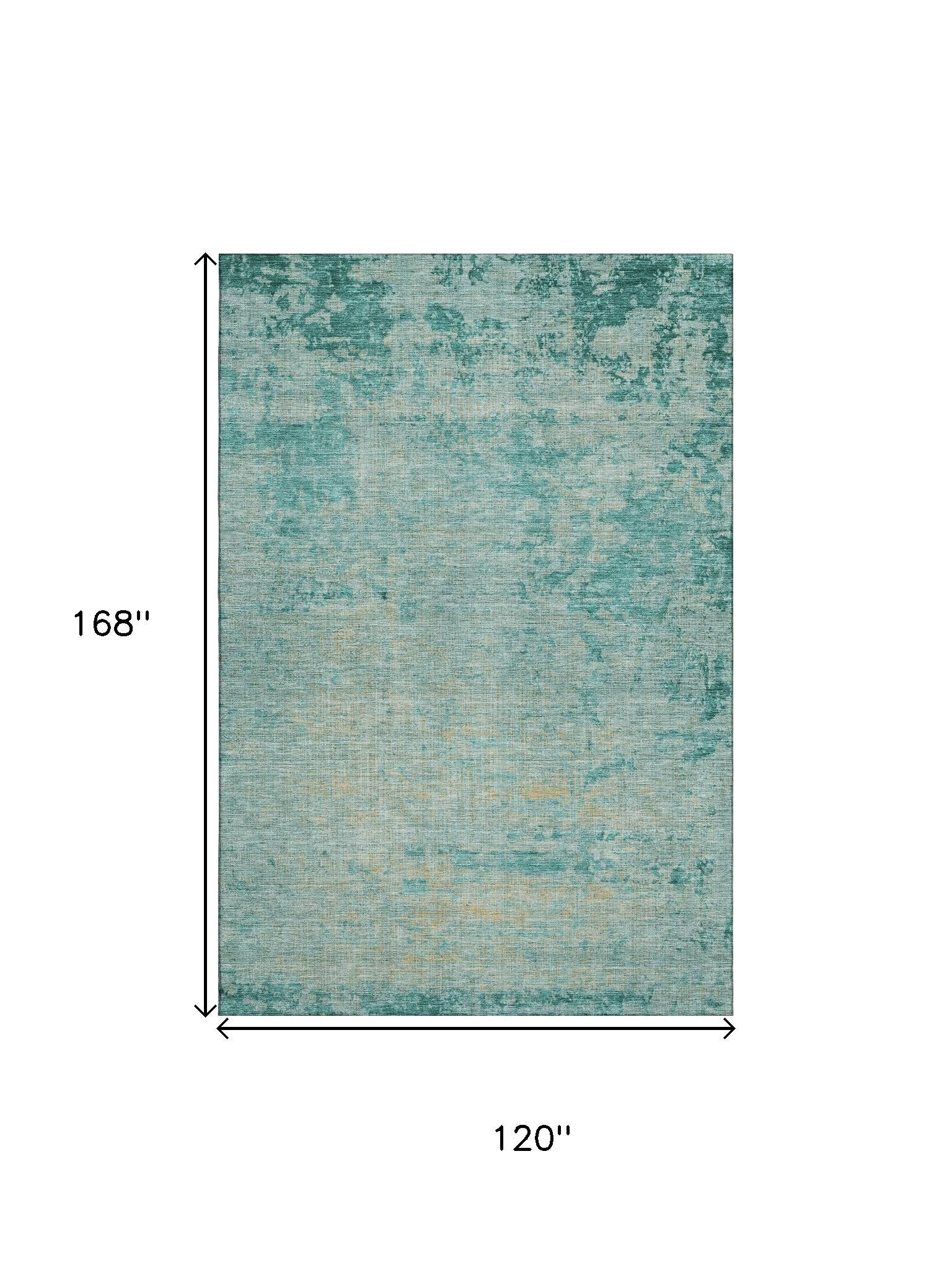Add some artistry to your room with this 10-foot x 14-foot teal and beige abstract washable area rug with uv protection. Ideal for spaces with kids and pets, this rug is stain resistant to help repel dirt and spilled liquids. Built to last, this rug crafted from polyester fibers is known for its durability and long lasting appeal. Rugs are a great way to showcase your style, hide imperfections, warm your home and reduce noise. This larger sized, transitional styled rug is ready to create a focal point or statement piece in your room. 120.00-inch h x 168.00-inch w x 0.39-inch d.