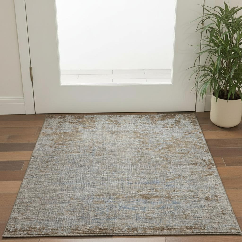 Add some artistry to your room with this 3-foot x 5-foot taupe and beige abstract washable area rug with uv protection. Ideal for spaces with kids and pets, this rug is stain resistant to help repel dirt and spilled liquids. Built to last, this rug crafted from polyester fibers is known for its durability and long lasting appeal. Rugs are a great way to showcase your style, hide imperfections, warm your home and reduce noise. This smaller sized, transitional styled rug is just what you need for your walkway, bedside, in front of door, cabinet, refrigerator, or chair. 36.00-inch h x 60.00-inch w x 0.39-inch d.