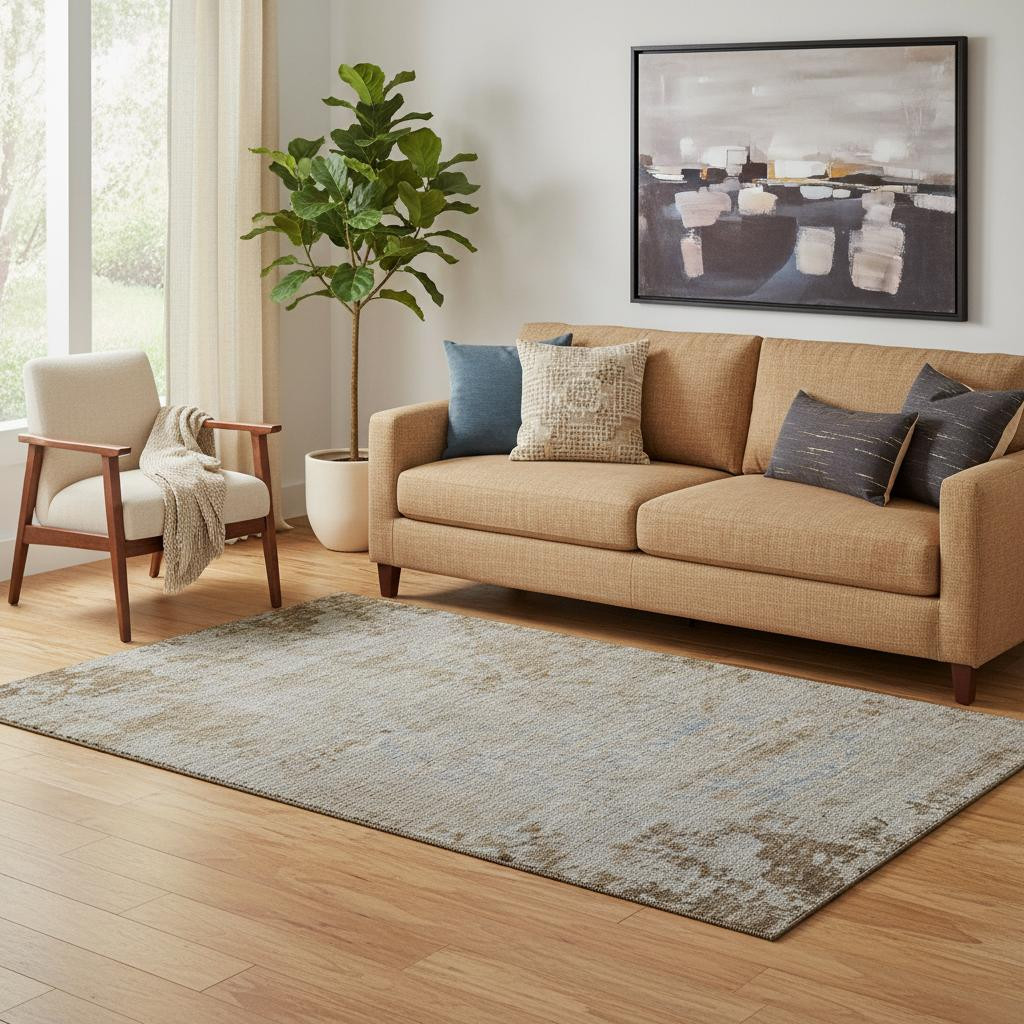 Set an inviting tone in your space with this 5-foot x 8-foot taupe and beige abstract washable area rug with uv protection. Ideal for spaces with kids and pets, this rug is stain resistant to help repel dirt and spilled liquids. Built to last, this rug crafted from polyester fibers is known for its durability and long lasting appeal. Rugs are a great way to showcase your style, hide imperfections, warm your home and reduce noise. This larger sized, transitional styled rug is ready to create a focal point or statement piece in your room. 60.00-inch h x 90.00-inch w x 0.39-inch d.