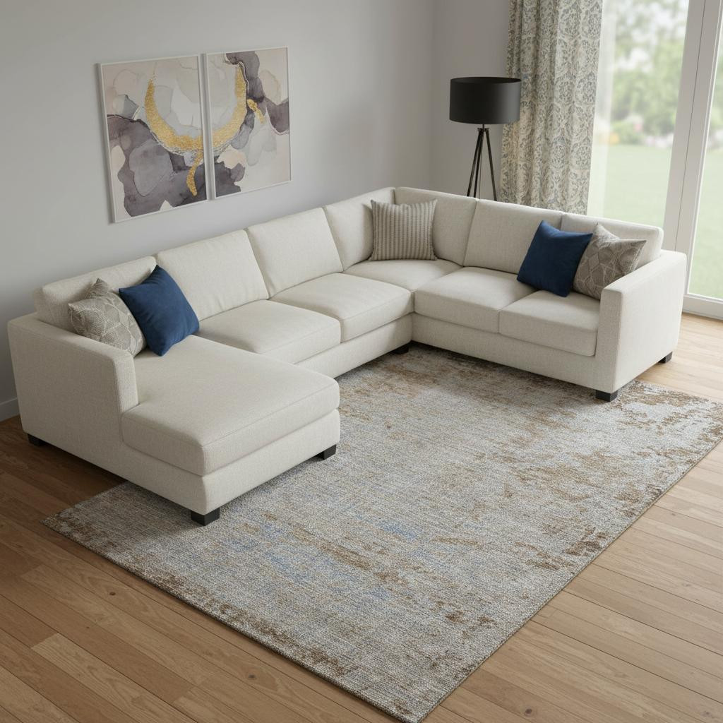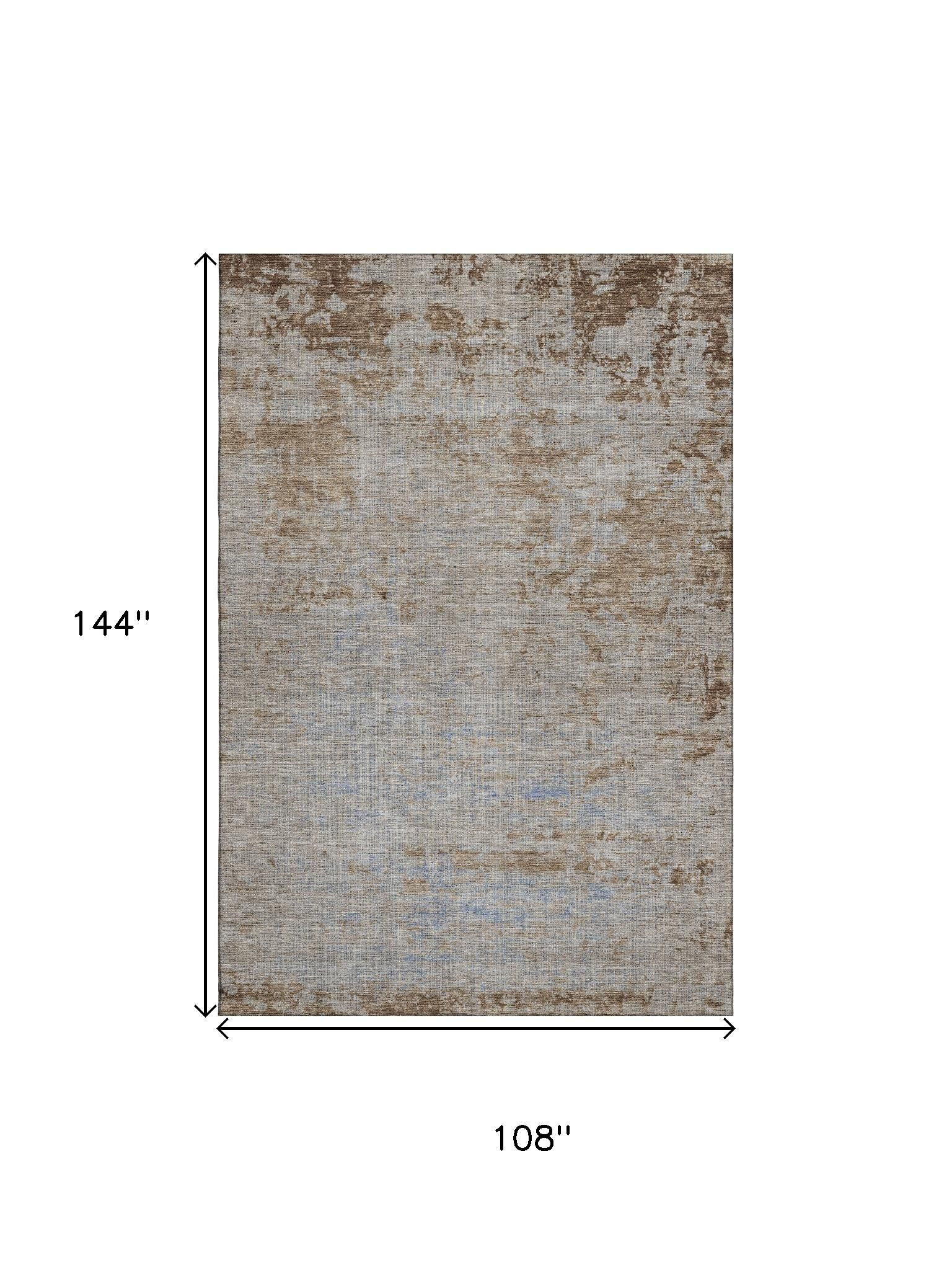 This 9-foot x 12-foot taupe and beige abstract washable area rug with uv protection, is a great way to add warmth to a room. Ideal for spaces with kids and pets, this rug is stain resistant to help repel dirt and spilled liquids. Built to last, this rug crafted from polyester fibers is known for its durability and long lasting appeal. Rugs are a great way to showcase your style, hide imperfections, warm your home and reduce noise. This larger sized, transitional styled rug is ready to create a focal point or statement piece in your room. 108.00-inch h x 144.00-inch w x 0.39-inch d.