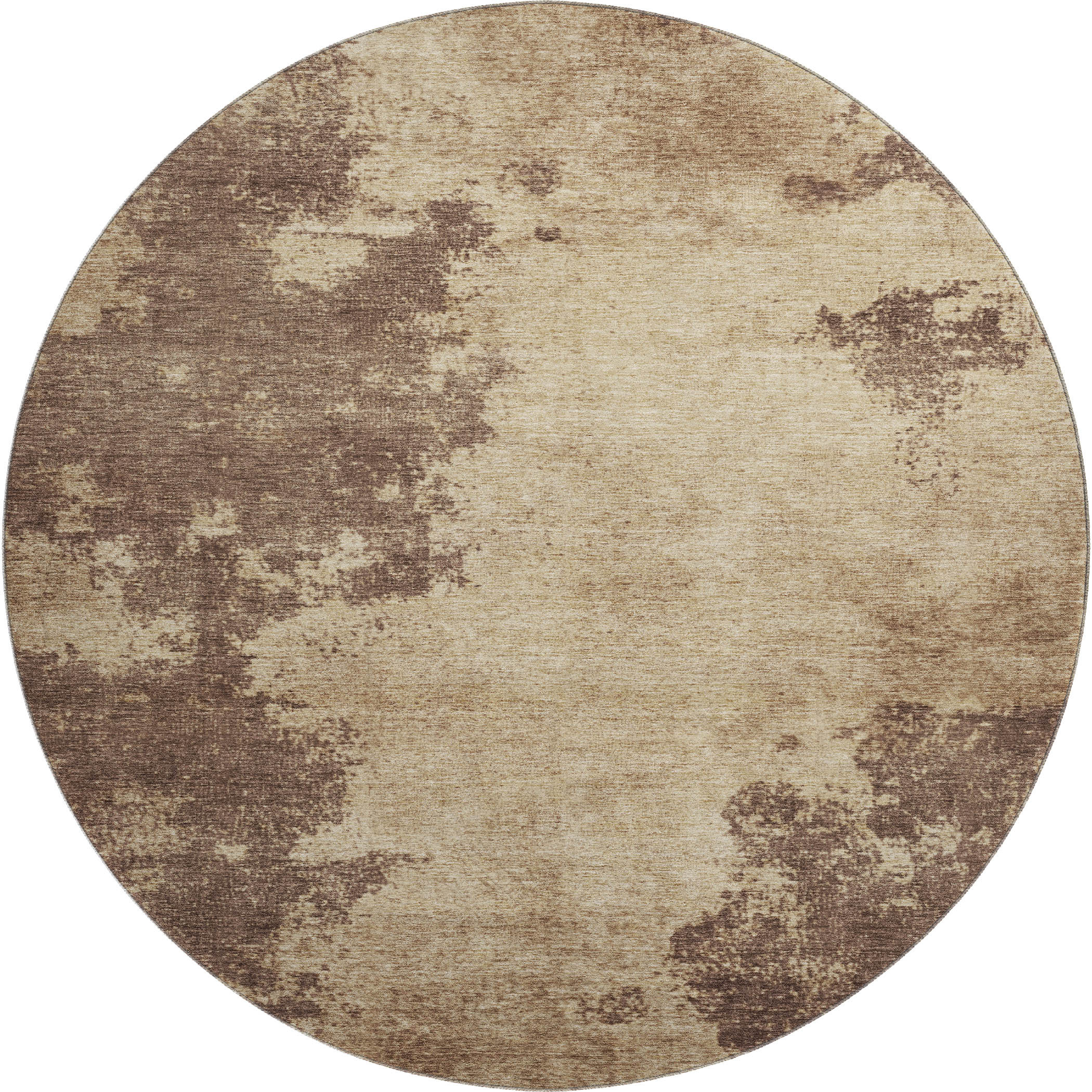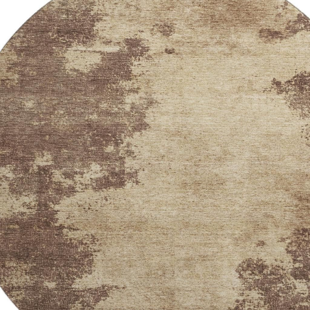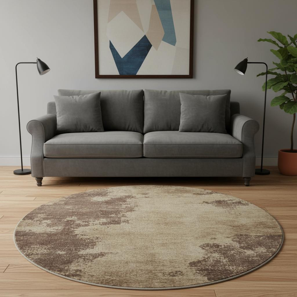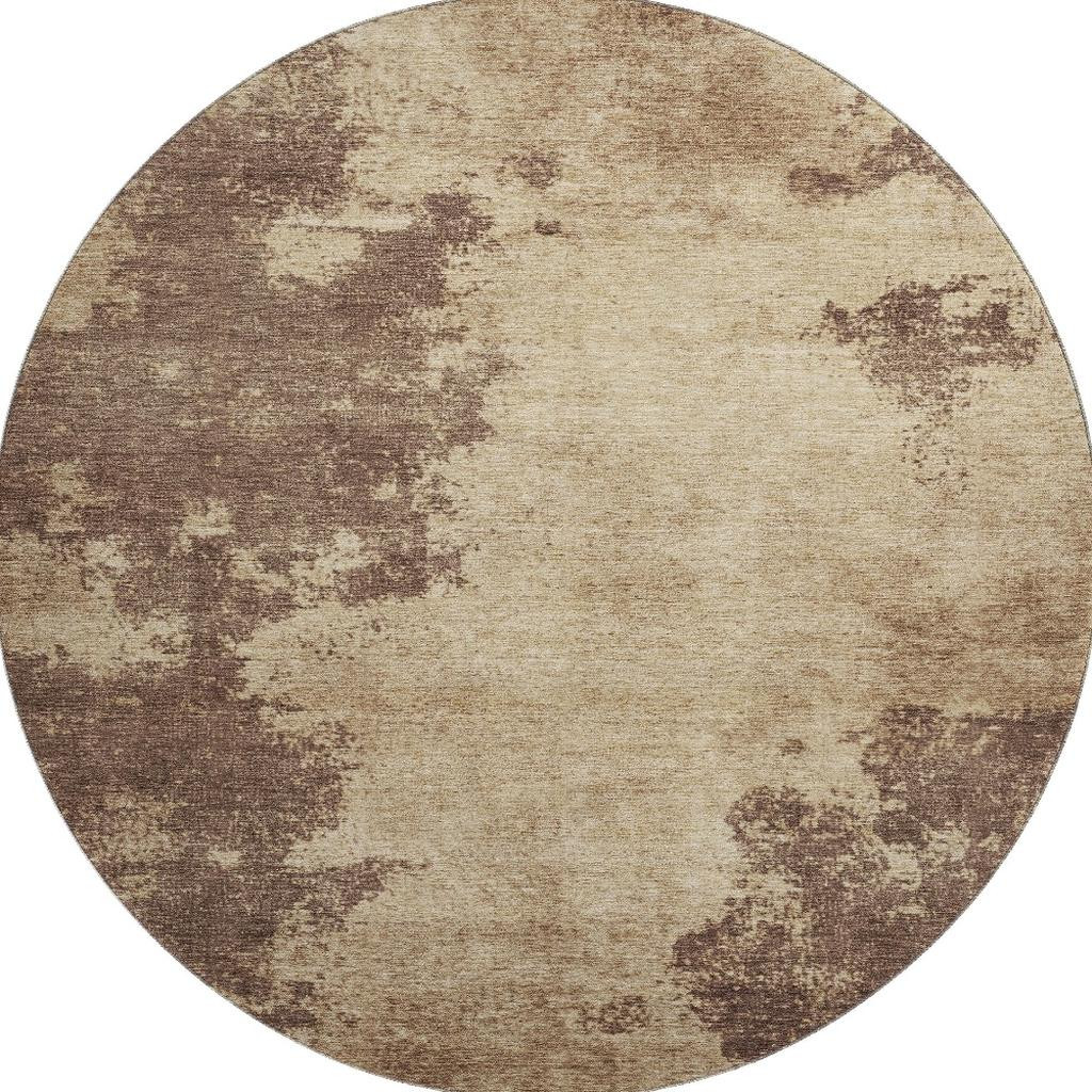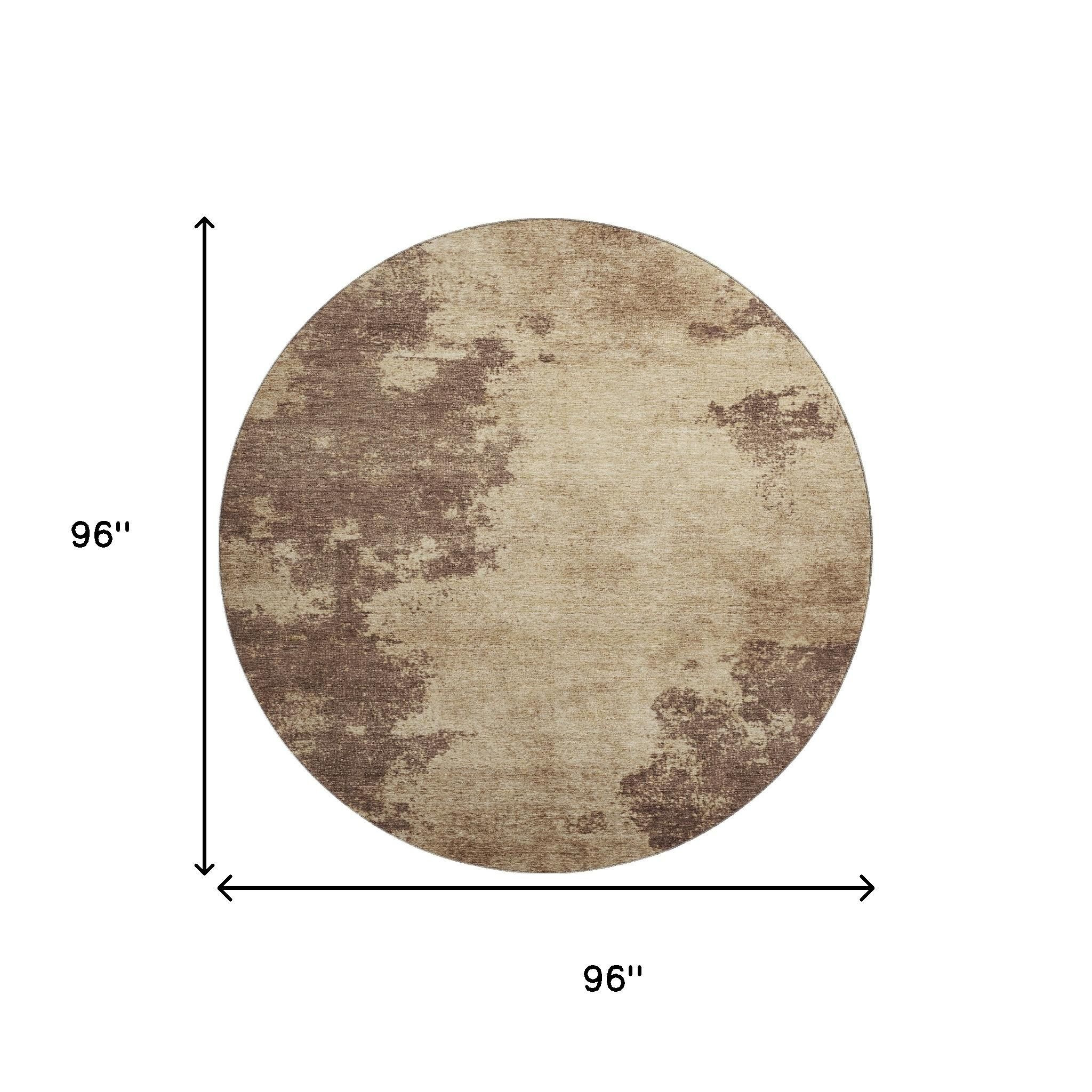 This 8-foot brown and beige abstract washable round rug with uv protection, is a great way to add warmth to a room. Ideal for spaces with kids and pets, this rug is stain resistant to help repel dirt and spilled liquids. Built to last, this rug crafted from polyester fibers is known for its durability and long lasting appeal. Rugs are a great way to showcase your style, hide imperfections, warm your home and reduce noise. This larger sized, transitional styled rug is ready to create a focal point or statement piece in your room. 96.00-inch h x 96.00-inch w x 0.39-inch d.