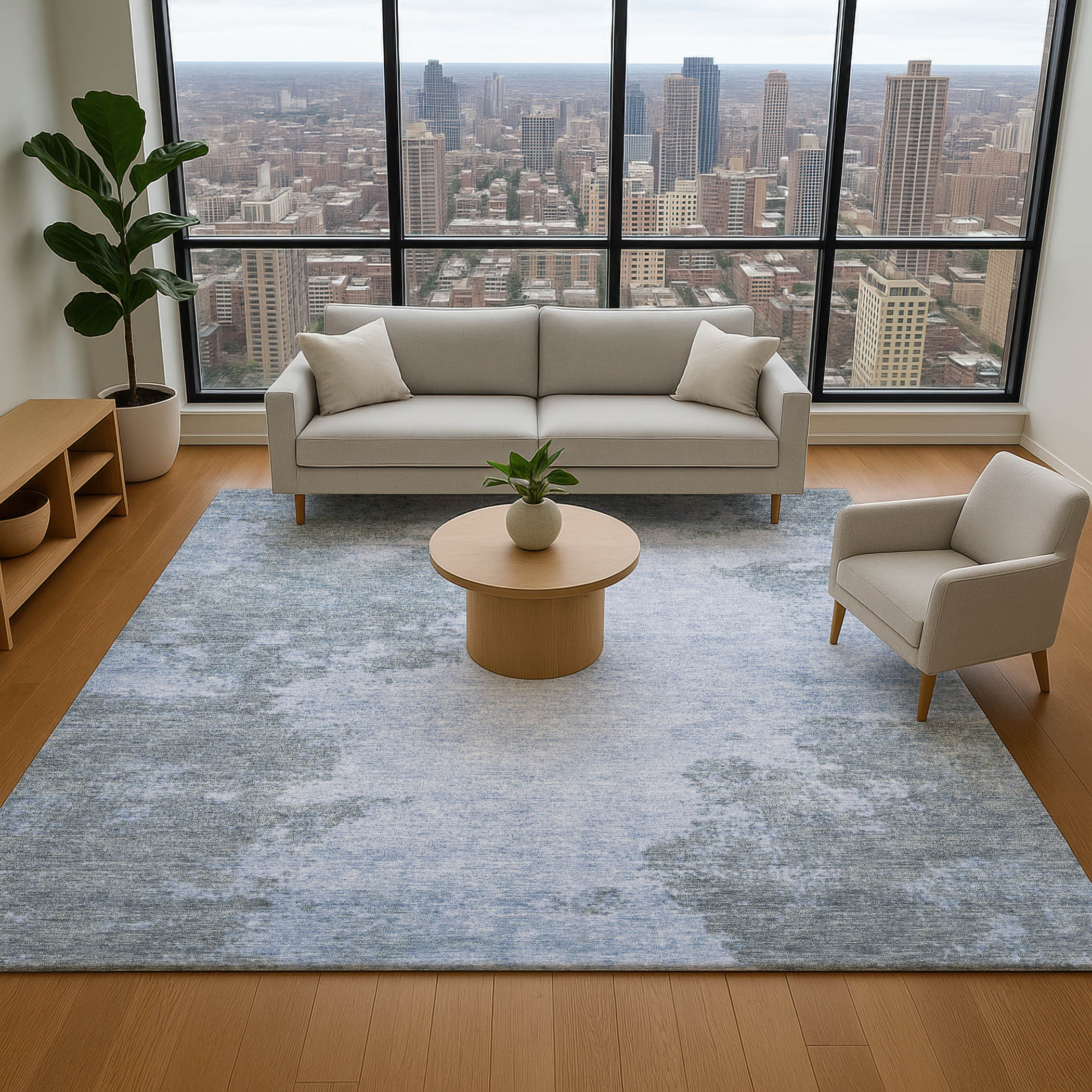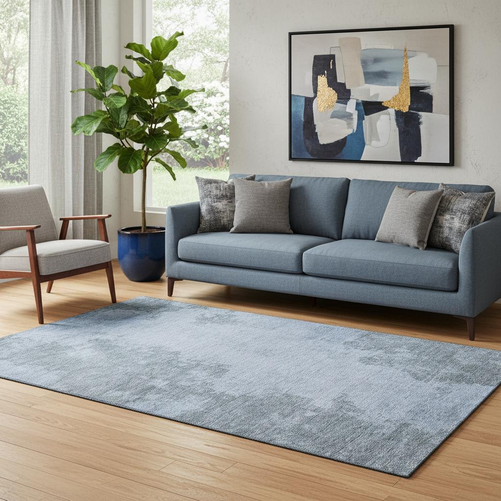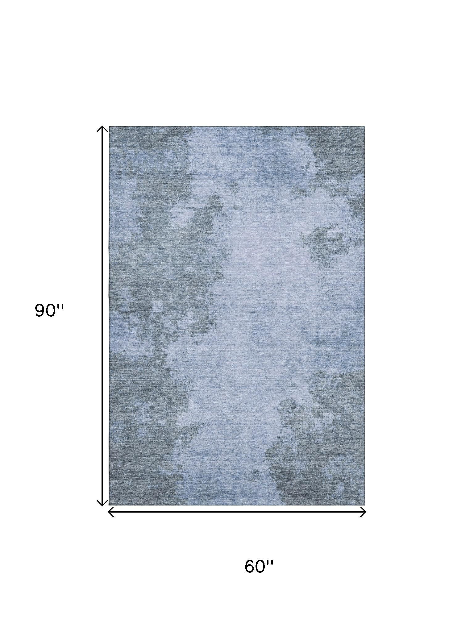 This 5-foot x 8-foot blue and gray abstract washable area rug with uv protection, is a great way to add warmth to a room. Ideal for spaces with kids and pets, this rug is stain resistant to help repel dirt and spilled liquids. Built to last, this rug crafted from polyester fibers is known for its durability and long lasting appeal. Rugs are a great way to showcase your style, hide imperfections, warm your home and reduce noise. This larger sized, transitional styled rug is ready to create a focal point or statement piece in your room. 60.00-inch h x 90.00-inch w x 0.39-inch d.