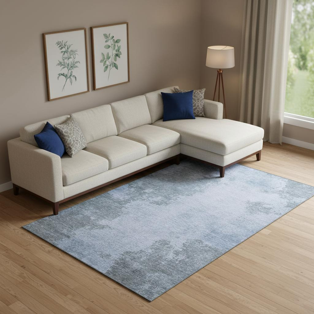 Add great coloration and comfortable texture to your space with this 10-foot x 14-foot blue and gray abstract washable area rug with uv protection. Ideal for spaces with kids and pets, this rug is stain resistant to help repel dirt and spilled liquids. Built to last, this rug crafted from polyester fibers is known for its durability and long lasting appeal. Rugs are a great way to showcase your style, hide imperfections, warm your home and reduce noise. This larger sized, transitional styled rug is ready to create a focal point or statement piece in your room. 120.00-inch h x 168.00-inch w x 0.39-inch d.