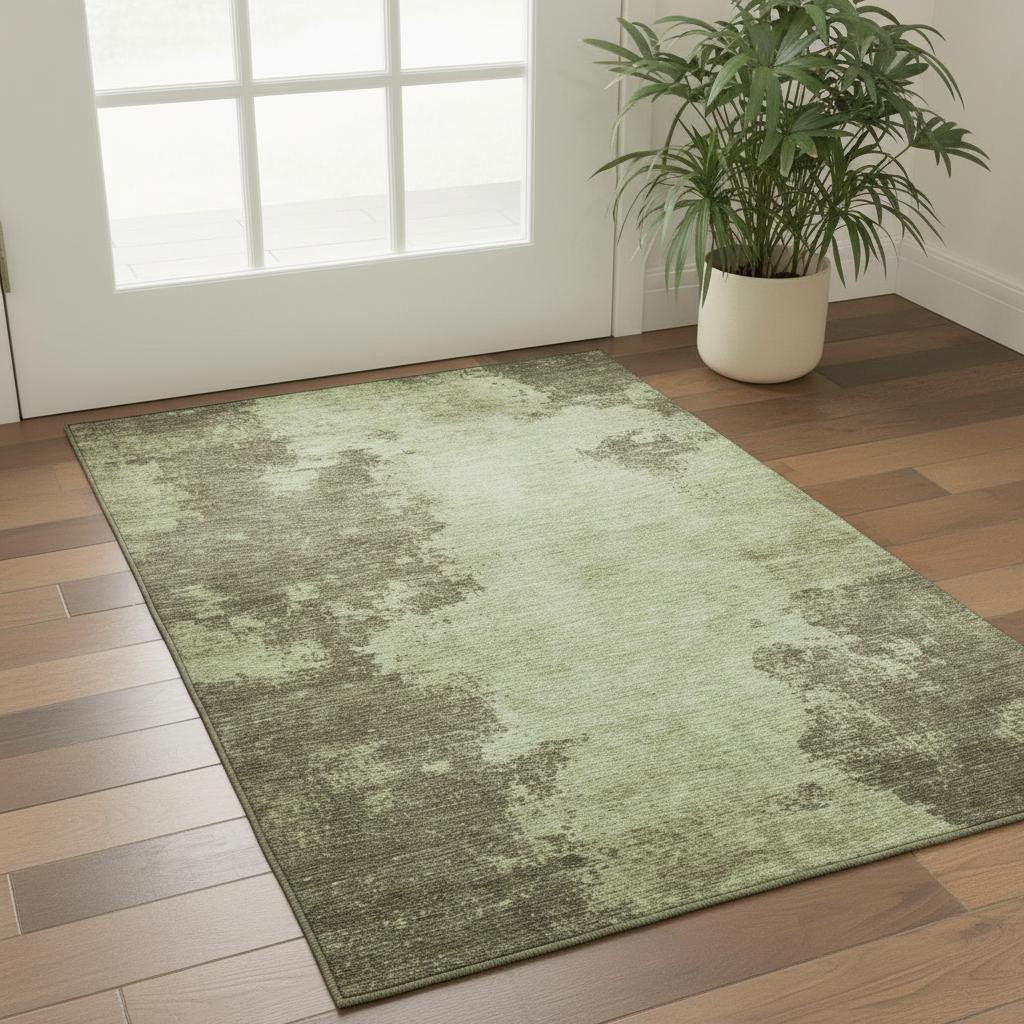 Add some artistry to your room with this 3-foot x 5-foot olive green and beige abstract washable area rug with uv protection. Ideal for spaces with kids and pets, this rug is stain resistant to help repel dirt and spilled liquids. Built to last, this rug crafted from polyester fibers is known for its durability and long lasting appeal. Rugs are a great way to showcase your style, hide imperfections, warm your home and reduce noise. This smaller sized, transitional styled rug is just what you need for your walkway, bedside, in front of door, cabinet, refrigerator, or chair. 36.00-inch h x 60.00-inch w x 0.39-inch d.
