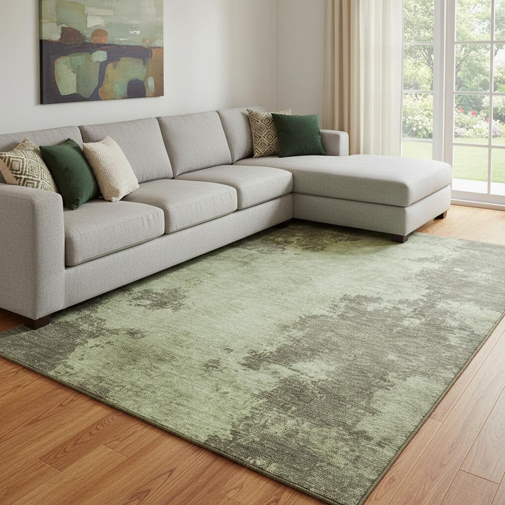 Set an inviting tone in your space with this 8-foot x 10-foot olive green and beige abstract washable area rug with uv protection. Ideal for spaces with kids and pets, this rug is stain resistant to help repel dirt and spilled liquids. Built to last, this rug crafted from polyester fibers is known for its durability and long lasting appeal. Rugs are a great way to showcase your style, hide imperfections, warm your home and reduce noise. This larger sized, transitional styled rug is ready to create a focal point or statement piece in your room. 96.00-inch h x 120.00-inch w x 0.39-inch d.