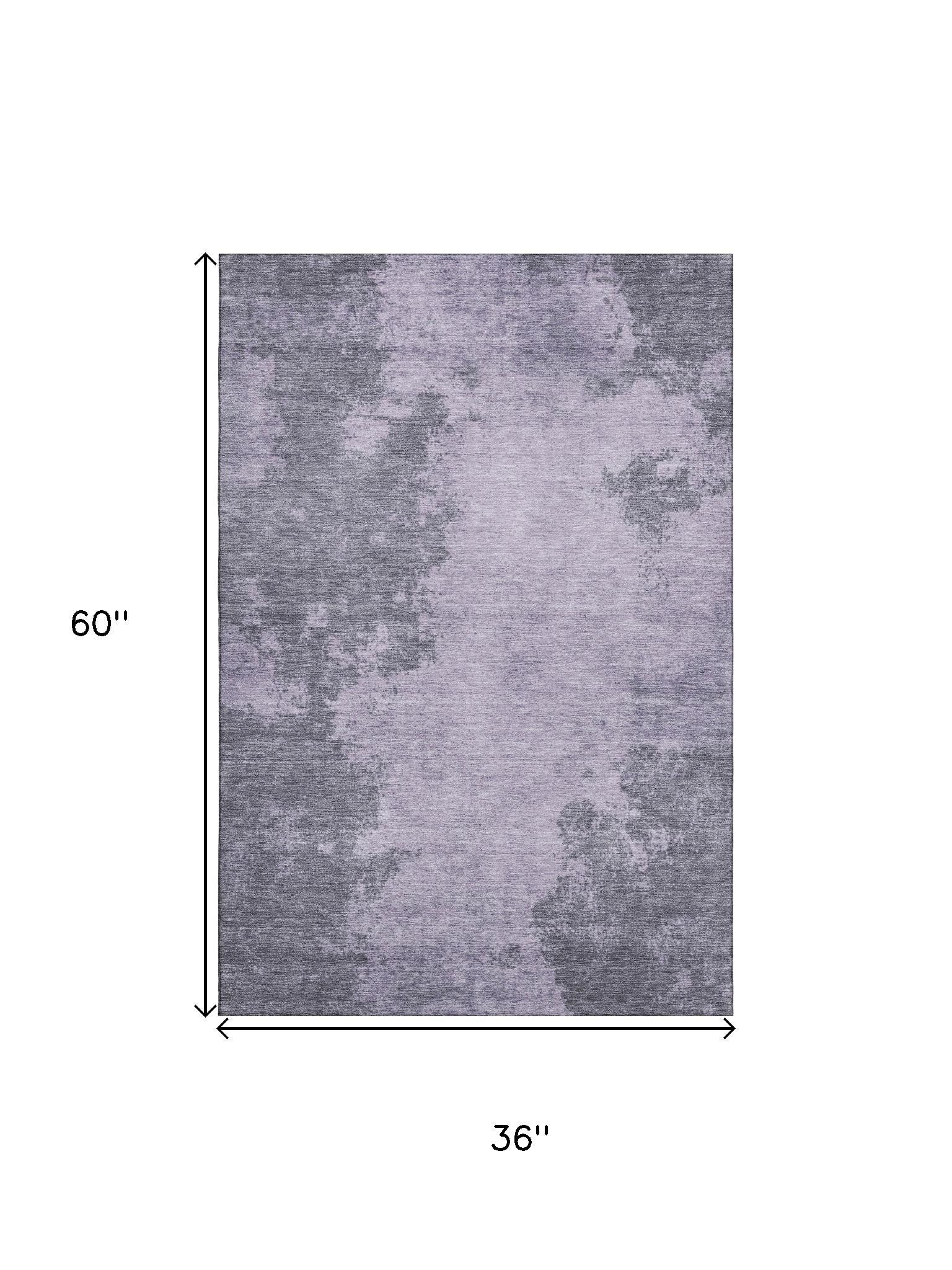 Add some artistry to your room with this 3-foot x 5-foot purple and gray abstract washable area rug with uv protection. Ideal for spaces with kids and pets, this rug is stain resistant to help repel dirt and spilled liquids. Built to last, this rug crafted from polyester fibers is known for its durability and long lasting appeal. Rugs are a great way to showcase your style, hide imperfections, warm your home and reduce noise. This smaller sized, transitional styled rug is just what you need for your walkway, bedside, in front of door, cabinet, refrigerator, or chair. 36.00-inch h x 60.00-inch w x 0.39-inch d.