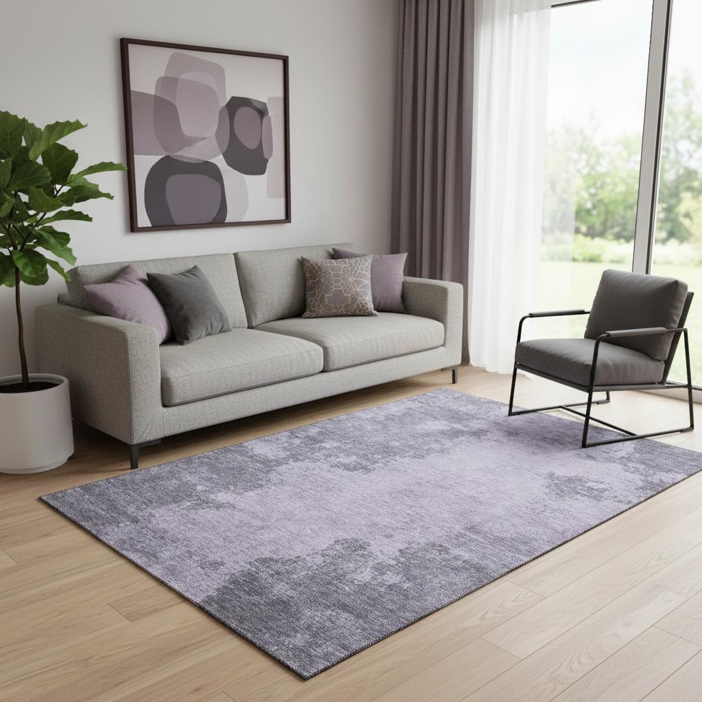 Set an inviting tone in your space with this 5-foot x 8-foot purple and gray abstract washable area rug with uv protection. Ideal for spaces with kids and pets, this rug is stain resistant to help repel dirt and spilled liquids. Built to last, this rug crafted from polyester fibers is known for its durability and long lasting appeal. Rugs are a great way to showcase your style, hide imperfections, warm your home and reduce noise. This larger sized, transitional styled rug is ready to create a focal point or statement piece in your room. 60.00-inch h x 90.00-inch w x 0.39-inch d.