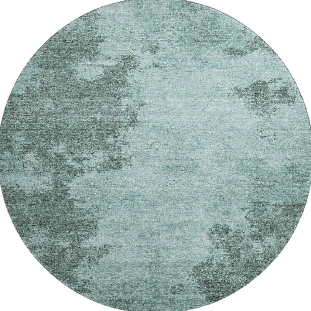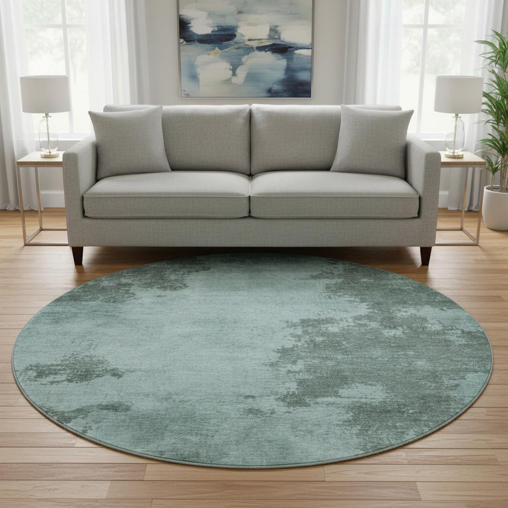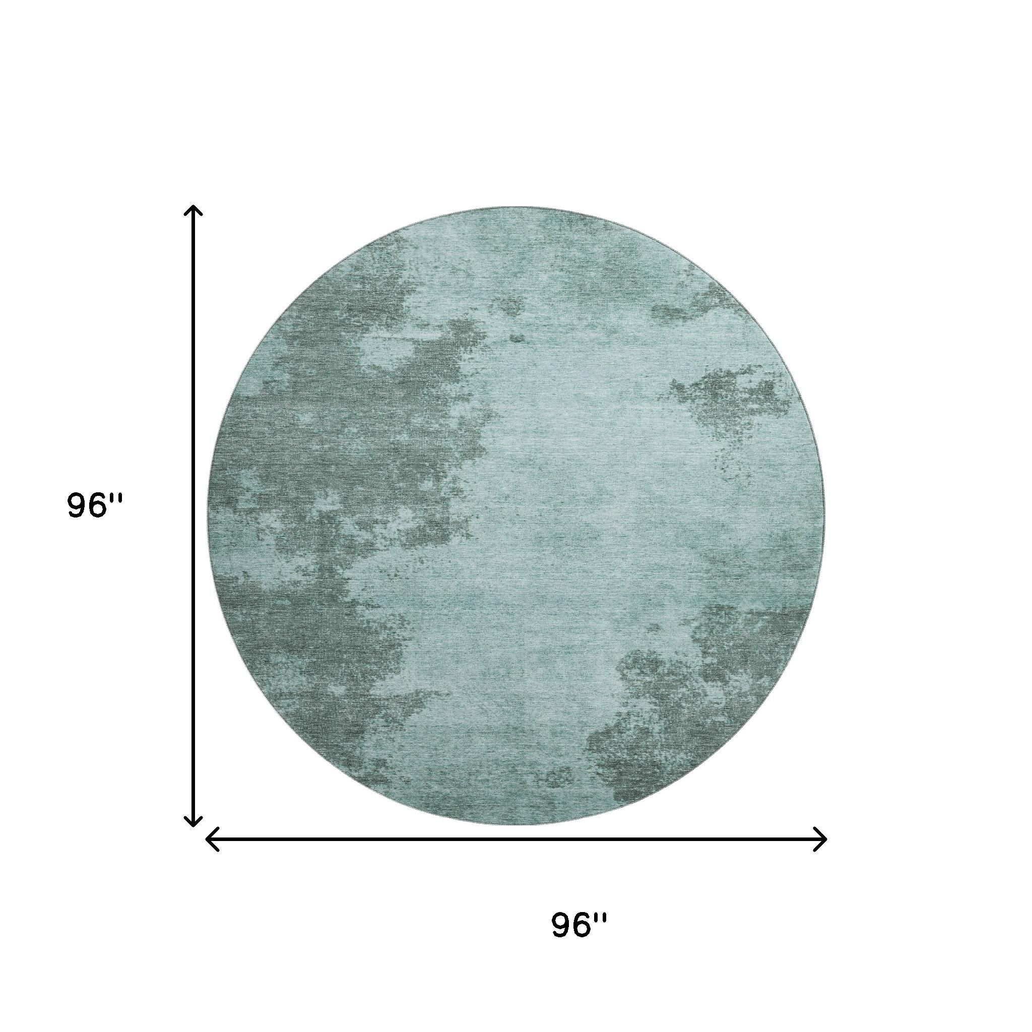 Set an inviting tone in your space with this 8-foot teal and gray abstract washable round rug with uv protection. Ideal for spaces with kids and pets, this rug is stain resistant to help repel dirt and spilled liquids. Built to last, this rug crafted from polyester fibers is known for its durability and long lasting appeal. Rugs are a great way to showcase your style, hide imperfections, warm your home and reduce noise. This larger sized, transitional styled rug is ready to create a focal point or statement piece in your room. 96.00-inch h x 96.00-inch w x 0.39-inch d.