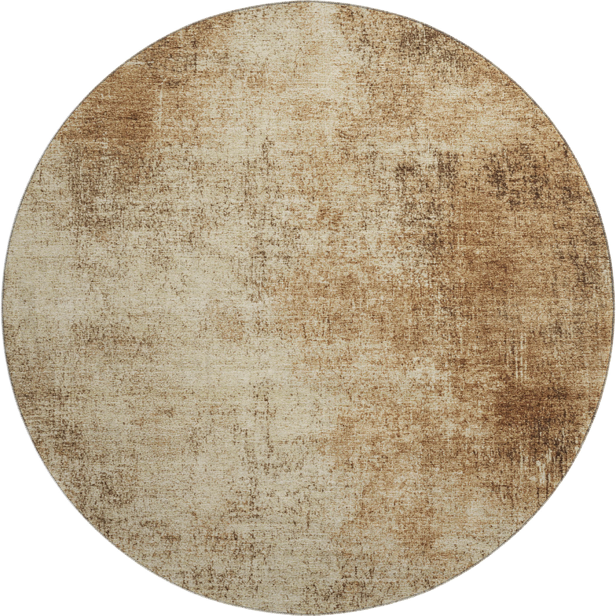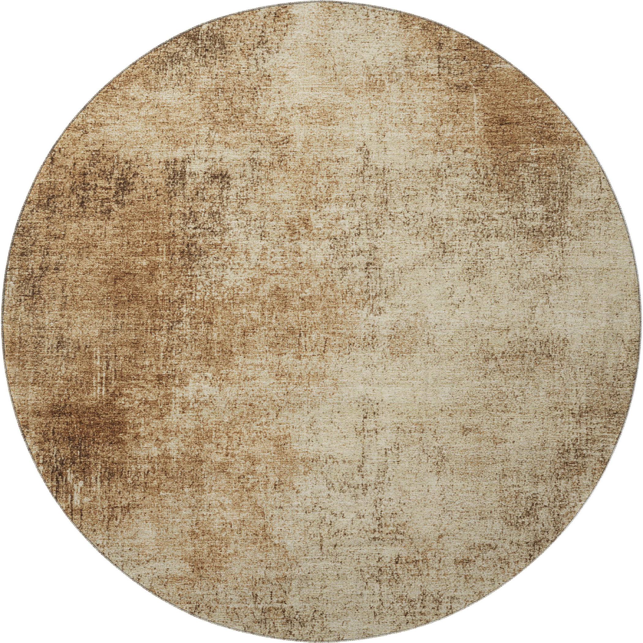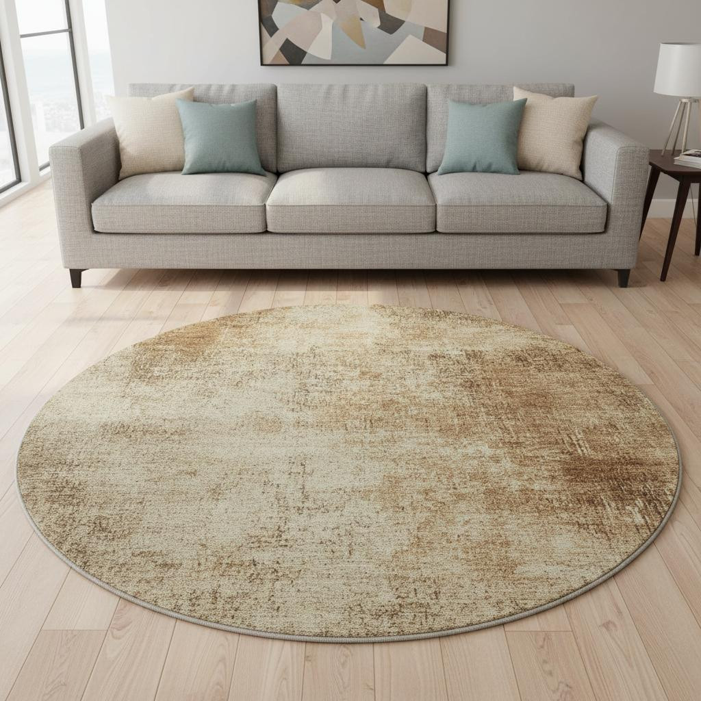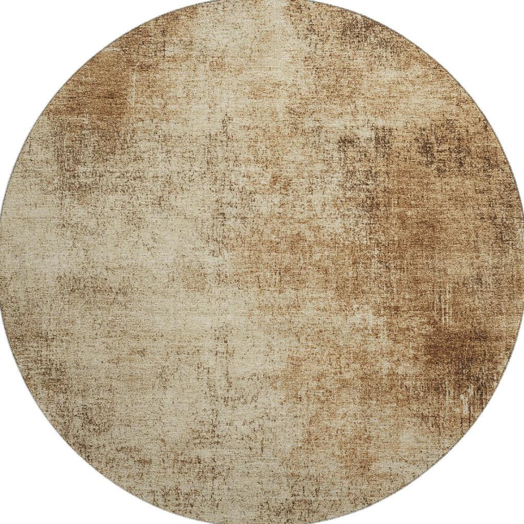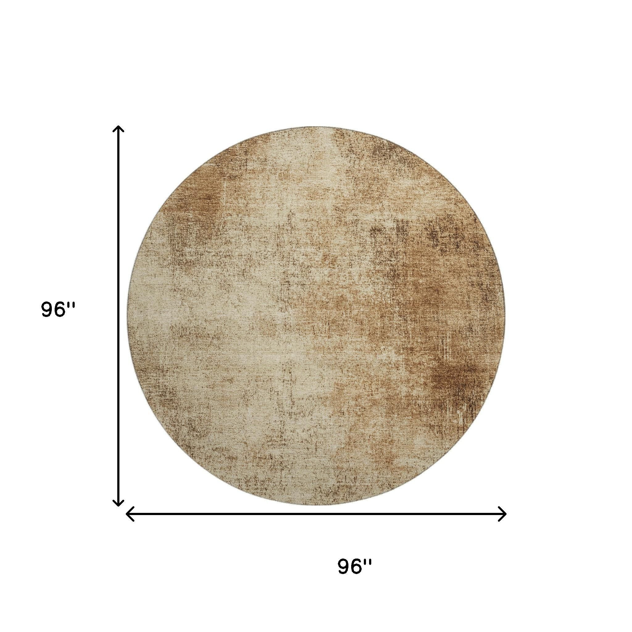 This 8-foot beige and brown abstract washable round rug with uv protection, is a great way to add warmth to a room. Ideal for spaces with kids and pets, this rug is stain resistant to help repel dirt and spilled liquids. Built to last, this rug crafted from polyester fibers is known for its durability and long lasting appeal. Rugs are a great way to showcase your style, hide imperfections, warm your home and reduce noise. This larger sized, transitional styled rug is ready to create a focal point or statement piece in your room. 96.00-inch h x 96.00-inch w x 0.39-inch d.