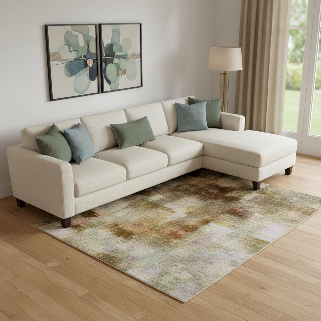 Add some artistry to your room with this 10-foot x 14-foot beige and brown abstract washable area rug with uv protection. Ideal for spaces with kids and pets, this rug is stain resistant to help repel dirt and spilled liquids. Built to last, this rug crafted from polyester fibers is known for its durability and long lasting appeal. Rugs are a great way to showcase your style, hide imperfections, warm your home and reduce noise. This larger sized, transitional styled rug is ready to create a focal point or statement piece in your room. 120.00-inch h x 168.00-inch w x 0.39-inch d.