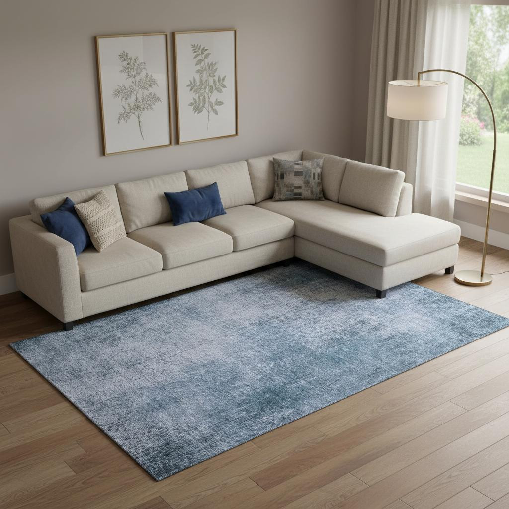 Add great coloration and comfortable texture to your space with this 9-foot x 12-foot blue and sky blue abstract washable area rug with uv protection. Ideal for spaces with kids and pets, this rug is stain resistant to help repel dirt and spilled liquids. Built to last, this rug crafted from polyester fibers is known for its durability and long lasting appeal. Rugs are a great way to showcase your style, hide imperfections, warm your home and reduce noise. This larger sized, transitional styled rug is ready to create a focal point or statement piece in your room. 108.00-inch h x 144.00-inch w x 0.39-inch d.