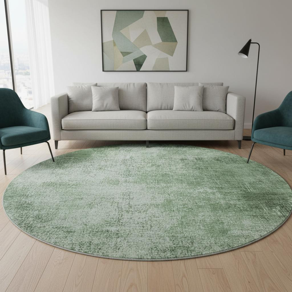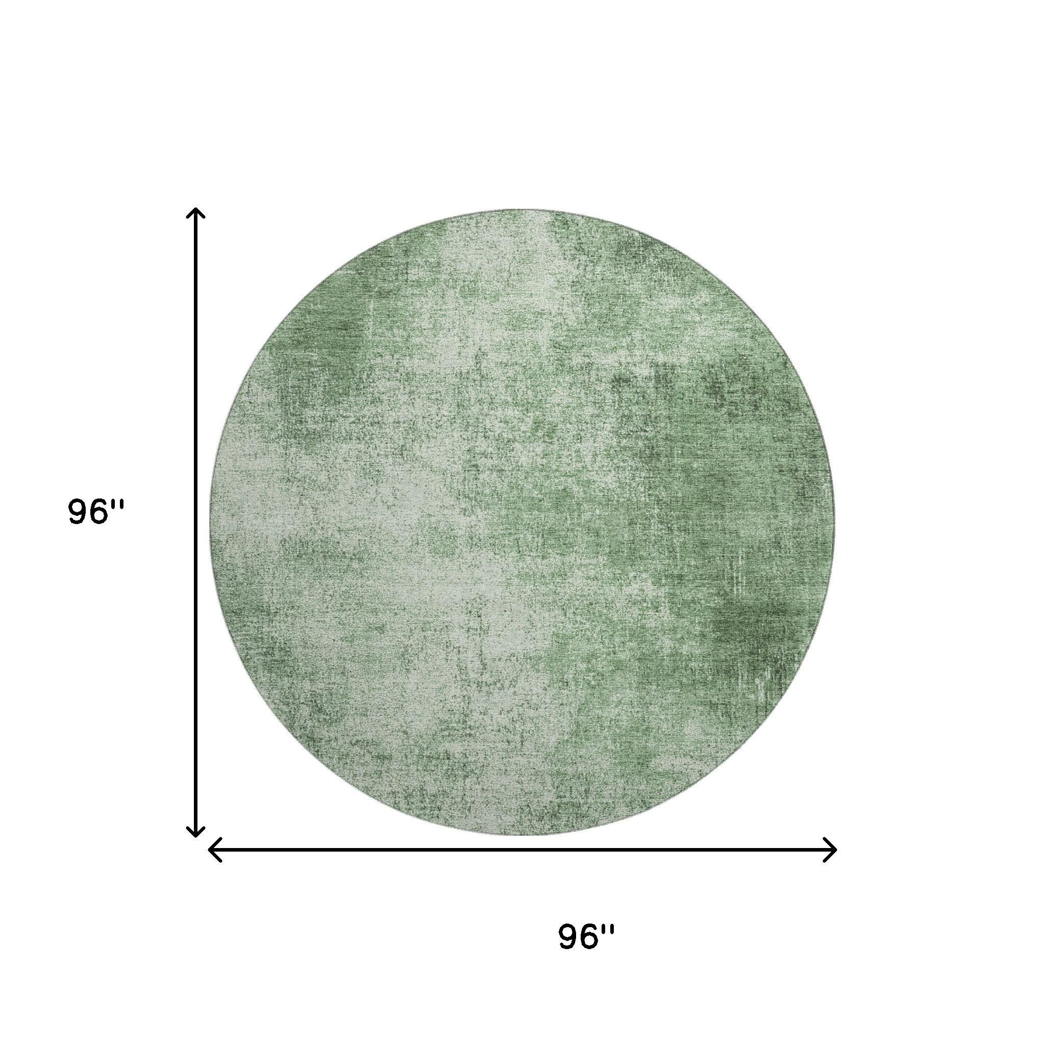 This 8-foot green and gray abstract washable round rug with uv protection, is a great way to add warmth to a room. Ideal for spaces with kids and pets, this rug is stain resistant to help repel dirt and spilled liquids. Built to last, this rug crafted from polyester fibers is known for its durability and long lasting appeal. Rugs are a great way to showcase your style, hide imperfections, warm your home and reduce noise. This larger sized, transitional styled rug is ready to create a focal point or statement piece in your room. 96.00-inch h x 96.00-inch w x 0.39-inch d.