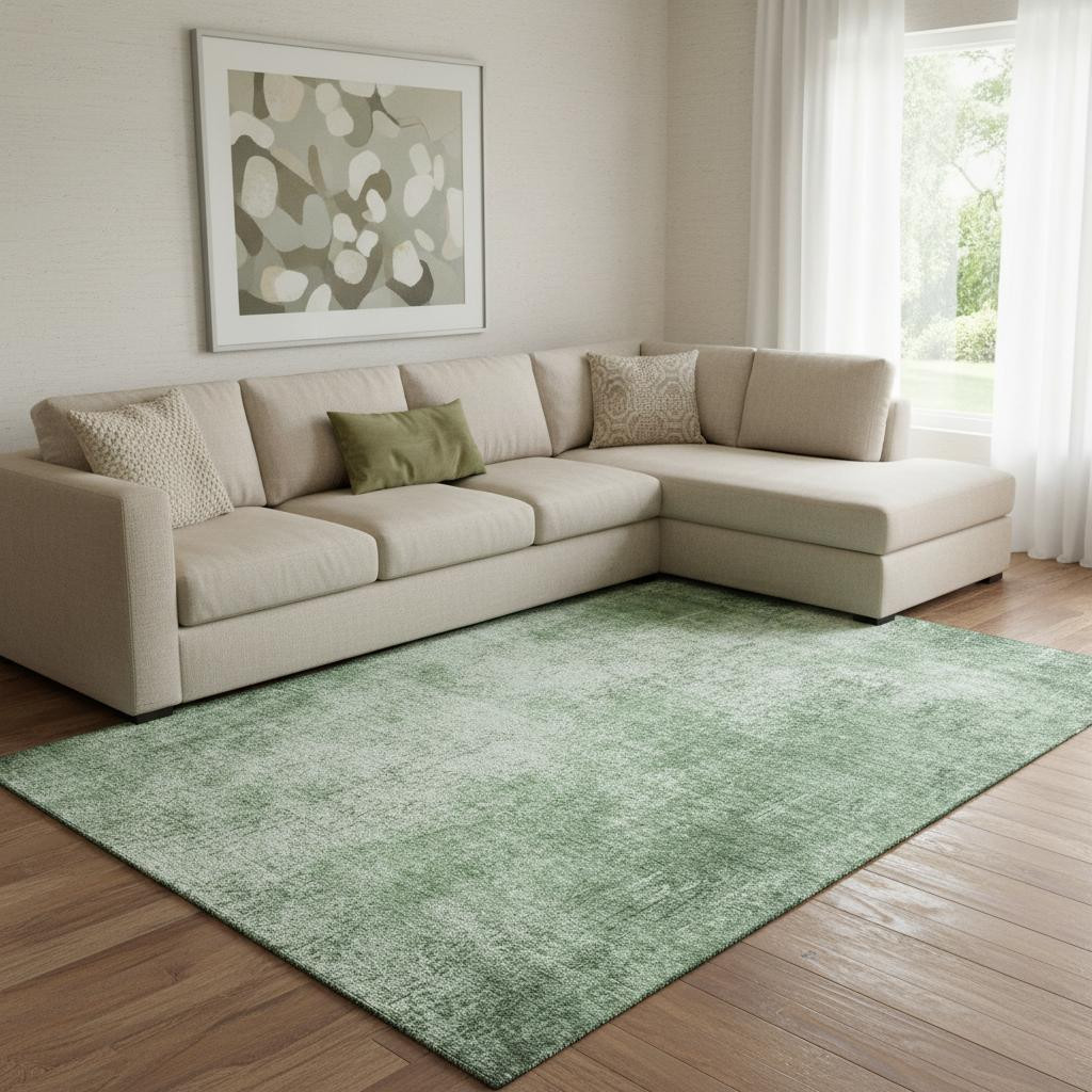 Add some artistry to your room with this 8-foot x 10-foot green and gray abstract washable area rug with uv protection. Ideal for spaces with kids and pets, this rug is stain resistant to help repel dirt and spilled liquids. Built to last, this rug crafted from polyester fibers is known for its durability and long lasting appeal. Rugs are a great way to showcase your style, hide imperfections, warm your home and reduce noise. This larger sized, transitional styled rug is ready to create a focal point or statement piece in your room. 96.00-inch h x 120.00-inch w x 0.39-inch d.