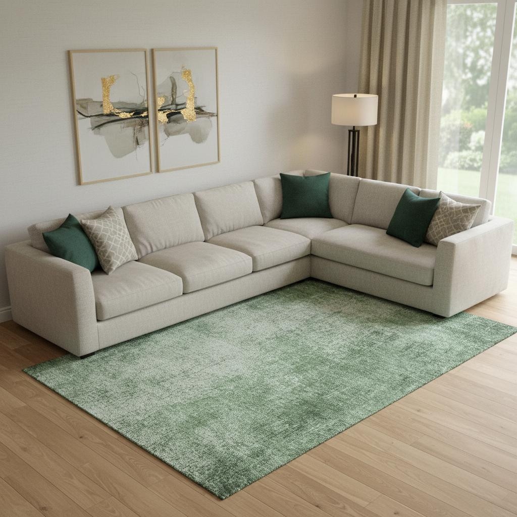 Set an inviting tone in your space with this 9-foot x 12-foot green and gray abstract washable area rug with uv protection. Ideal for spaces with kids and pets, this rug is stain resistant to help repel dirt and spilled liquids. Built to last, this rug crafted from polyester fibers is known for its durability and long lasting appeal. Rugs are a great way to showcase your style, hide imperfections, warm your home and reduce noise. This larger sized, transitional styled rug is ready to create a focal point or statement piece in your room. 108.00-inch h x 144.00-inch w x 0.39-inch d.