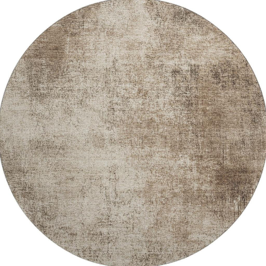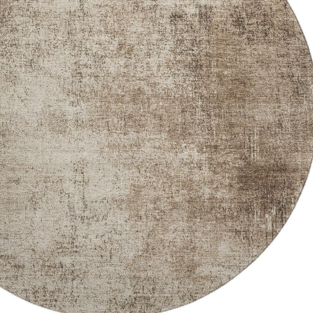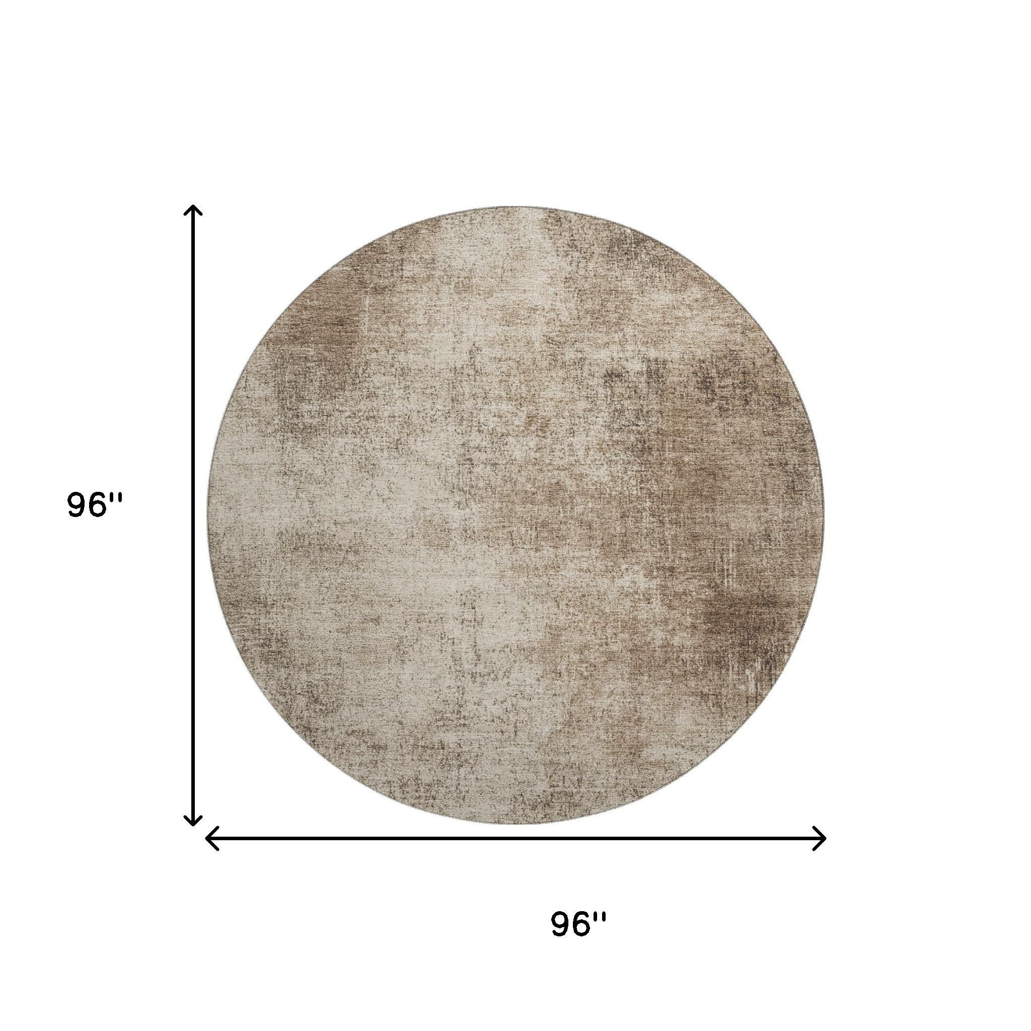 Add some artistry to your room with this 8-foot taupe and beige abstract washable round rug with uv protection. Ideal for spaces with kids and pets, this rug is stain resistant to help repel dirt and spilled liquids. Built to last, this rug crafted from polyester fibers is known for its durability and long lasting appeal. Rugs are a great way to showcase your style, hide imperfections, warm your home and reduce noise. This larger sized, transitional styled rug is ready to create a focal point or statement piece in your room. 96.00-inch h x 96.00-inch w x 0.39-inch d.