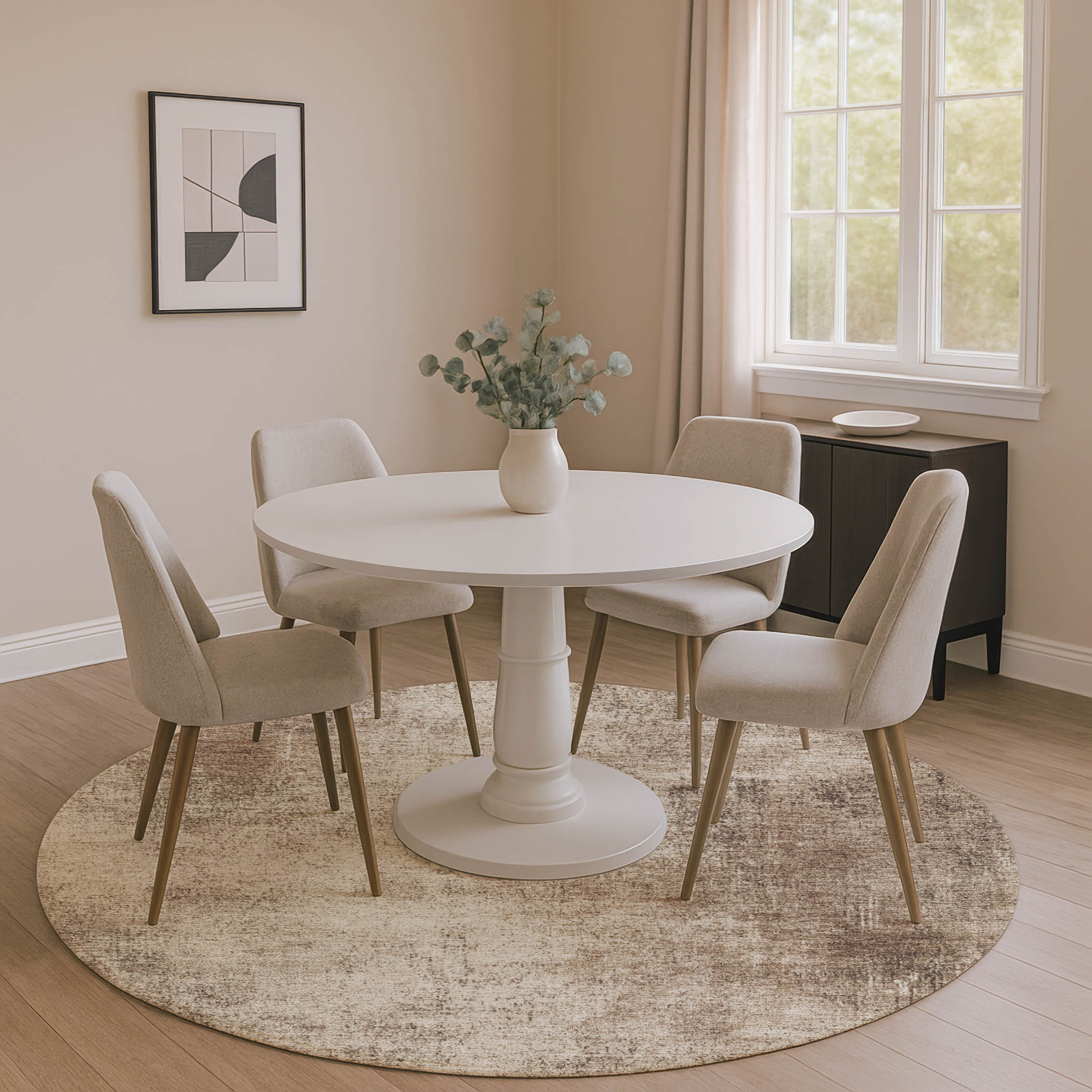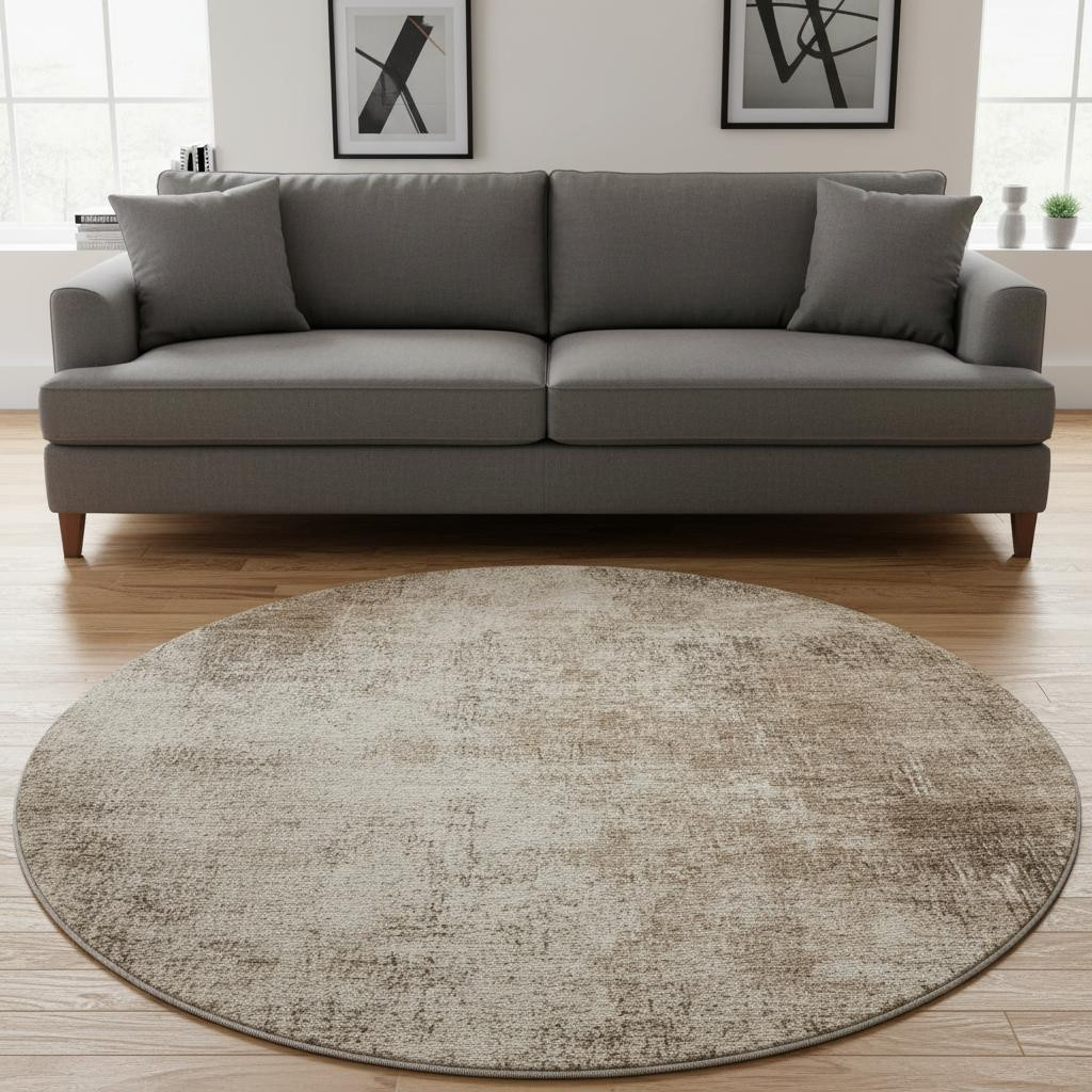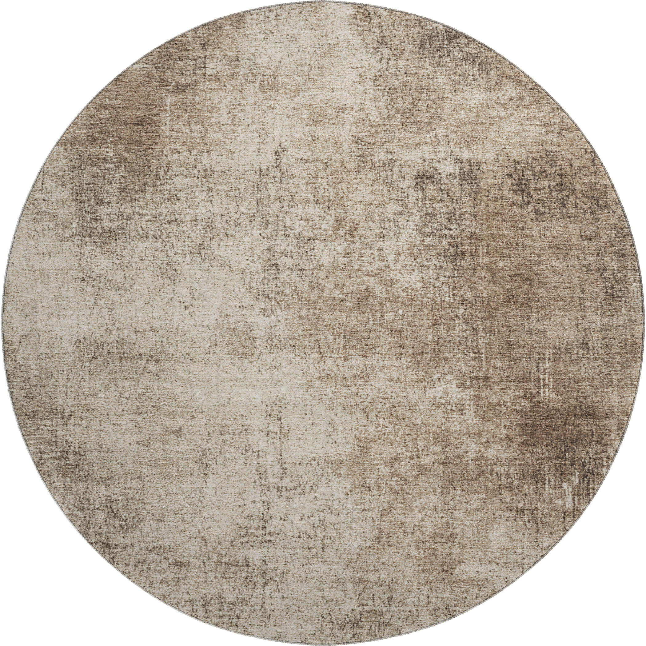 Add some artistry to your room with this 8-foot taupe and beige abstract washable round rug with uv protection. Ideal for spaces with kids and pets, this rug is stain resistant to help repel dirt and spilled liquids. Built to last, this rug crafted from polyester fibers is known for its durability and long lasting appeal. Rugs are a great way to showcase your style, hide imperfections, warm your home and reduce noise. This larger sized, transitional styled rug is ready to create a focal point or statement piece in your room. 96.00-inch h x 96.00-inch w x 0.39-inch d.