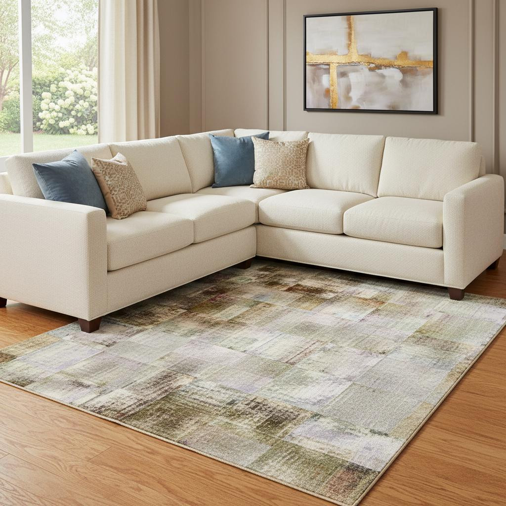 This 8-foot x 10-foot taupe and beige abstract washable area rug with uv protection, is a great way to add warmth to a room. Ideal for spaces with kids and pets, this rug is stain resistant to help repel dirt and spilled liquids. Built to last, this rug crafted from polyester fibers is known for its durability and long lasting appeal. Rugs are a great way to showcase your style, hide imperfections, warm your home and reduce noise. This larger sized, transitional styled rug is ready to create a focal point or statement piece in your room. 96.00-inch h x 120.00-inch w x 0.39-inch d.
