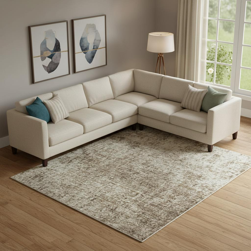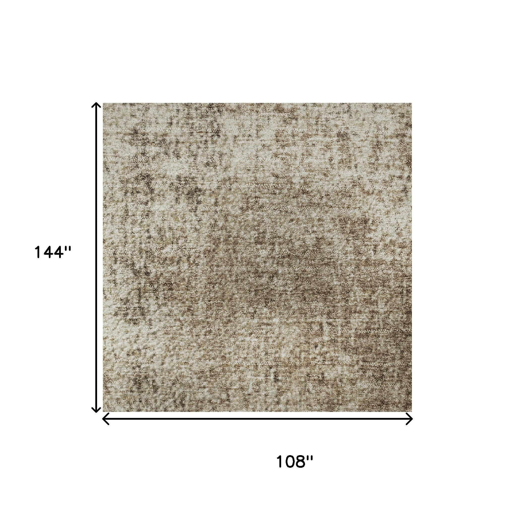 Add some artistry to your room with this 9-foot x 12-foot taupe and beige abstract washable area rug with uv protection. Ideal for spaces with kids and pets, this rug is stain resistant to help repel dirt and spilled liquids. Built to last, this rug crafted from polyester fibers is known for its durability and long lasting appeal. Rugs are a great way to showcase your style, hide imperfections, warm your home and reduce noise. This larger sized, transitional styled rug is ready to create a focal point or statement piece in your room. 108.00-inch h x 144.00-inch w x 0.39-inch d.
