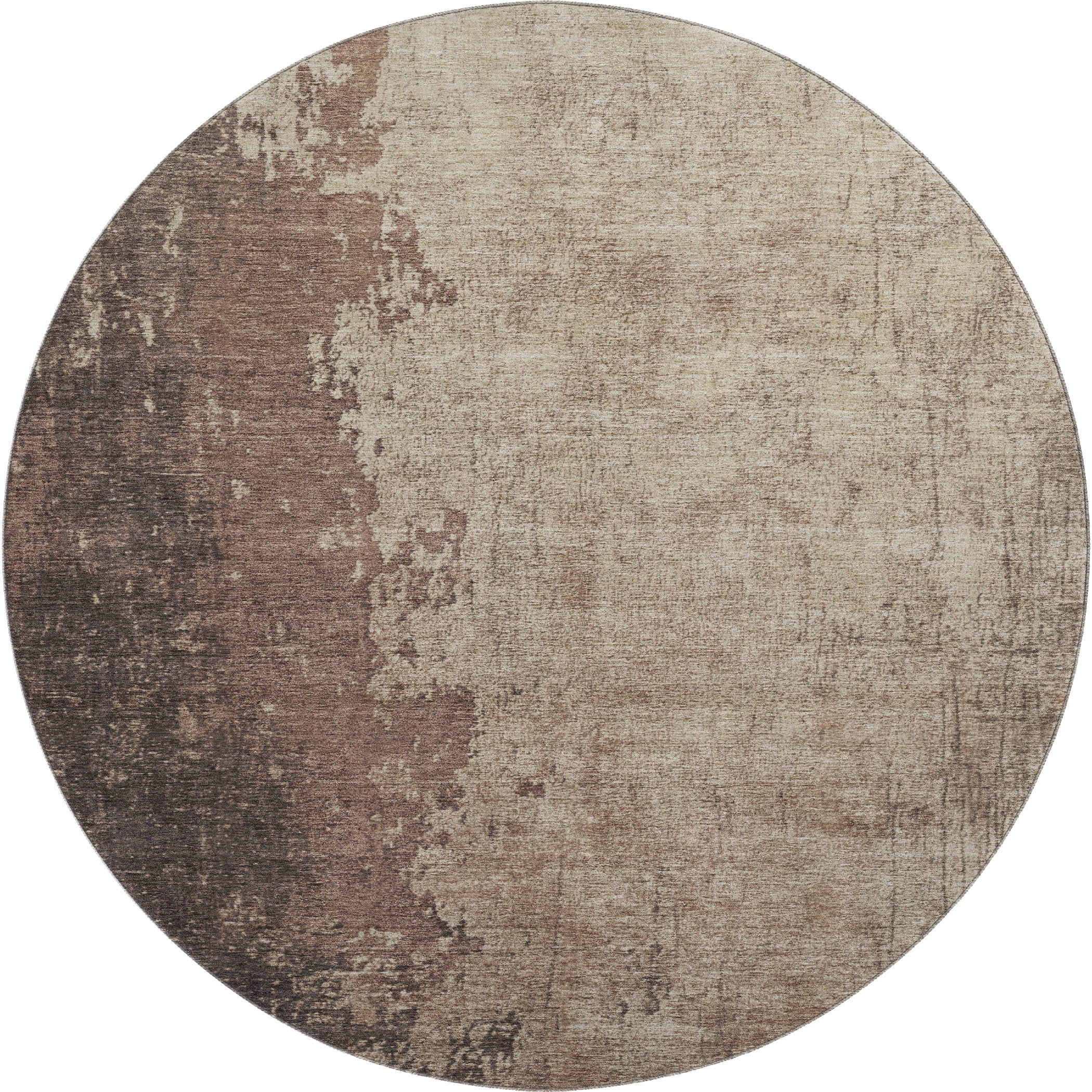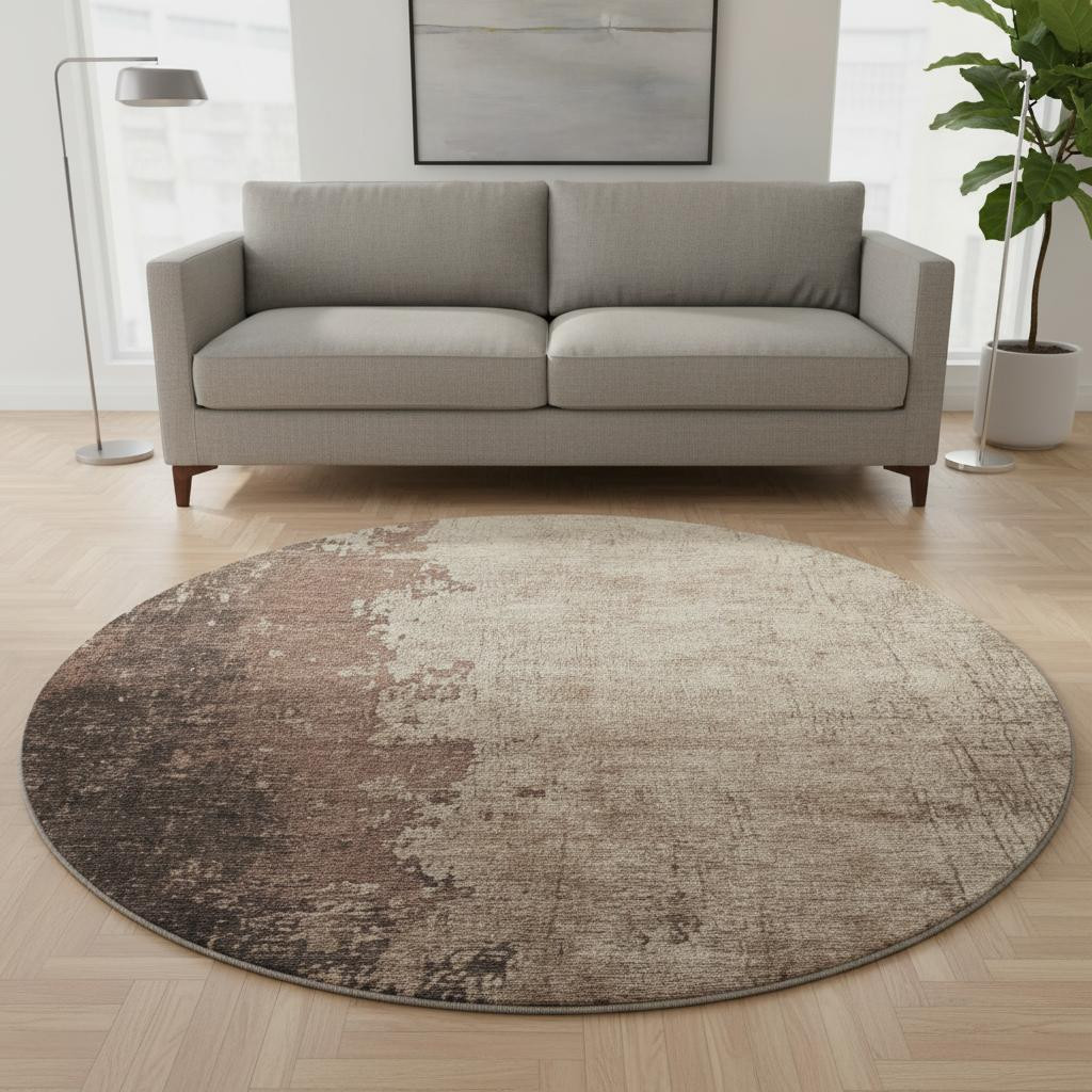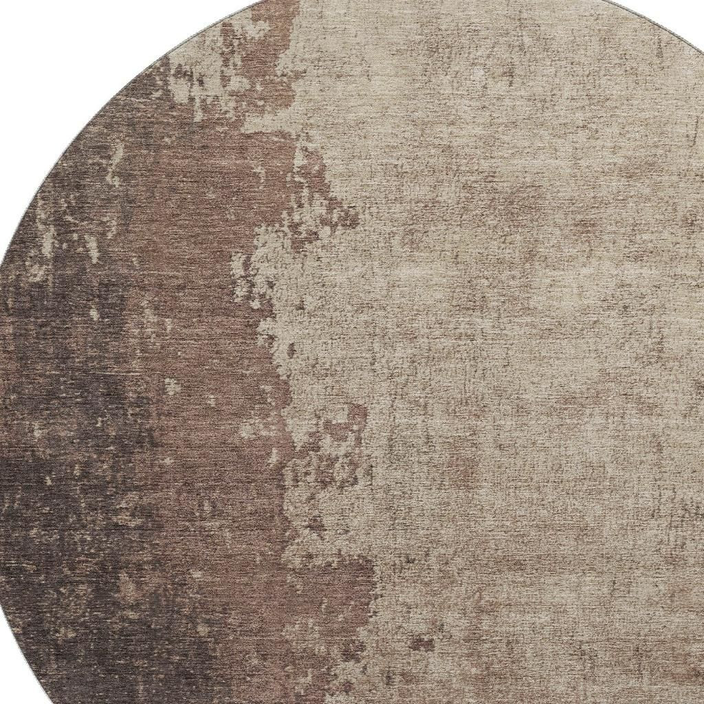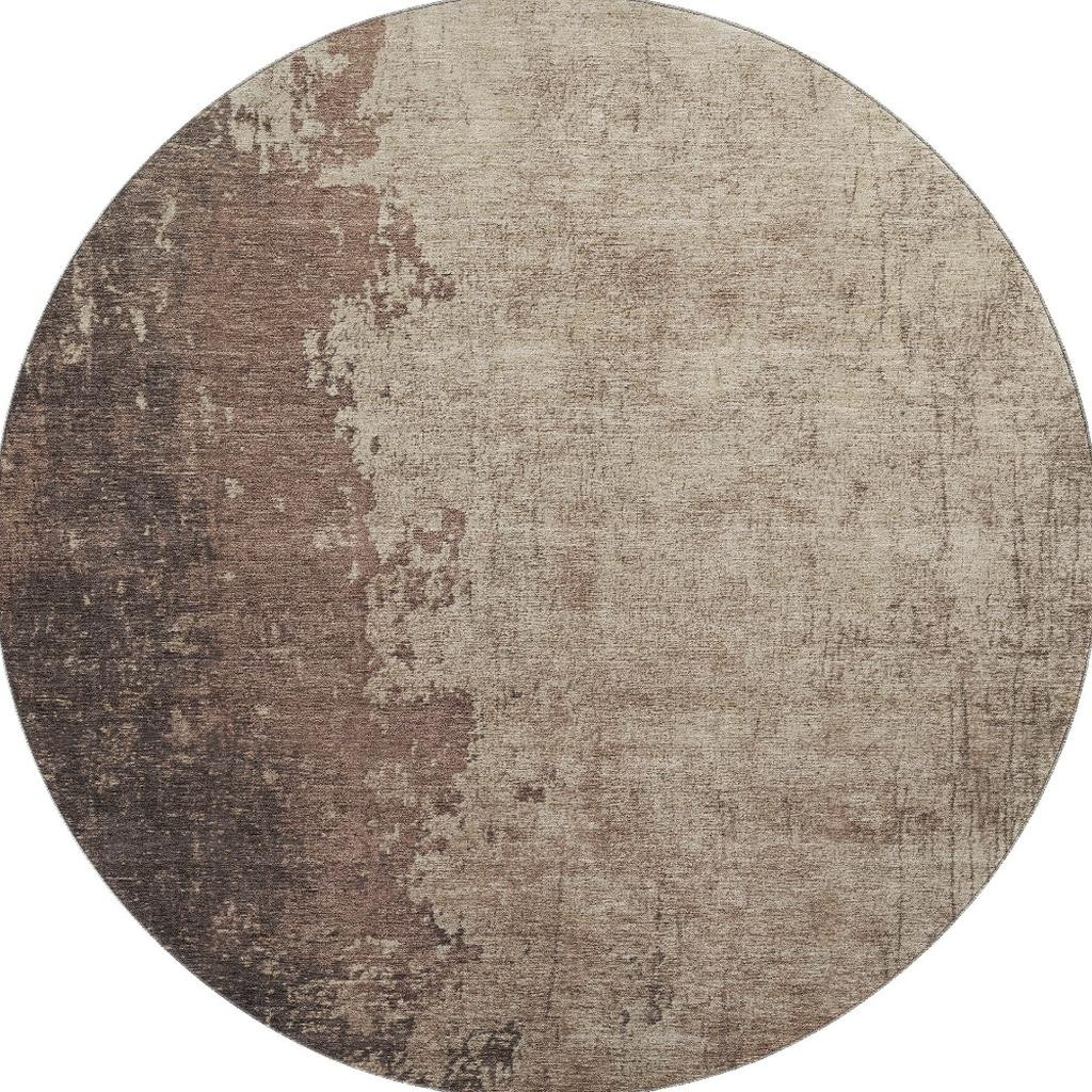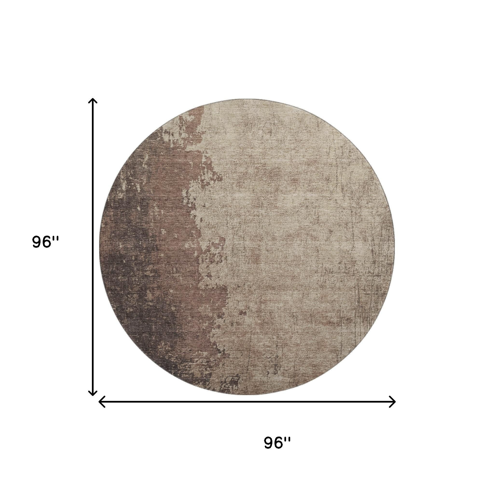 Add great coloration and comfortable texture to your space with this 8-foot chocolate and beige abstract washable round rug with uv protection. Ideal for spaces with kids and pets, this rug is stain resistant to help repel dirt and spilled liquids. Built to last, this rug crafted from polyester fibers is known for its durability and long lasting appeal. Rugs are a great way to showcase your style, hide imperfections, warm your home and reduce noise. This larger sized, transitional styled rug is ready to create a focal point or statement piece in your room. 96.00-inch h x 96.00-inch w x 0.39-inch d.