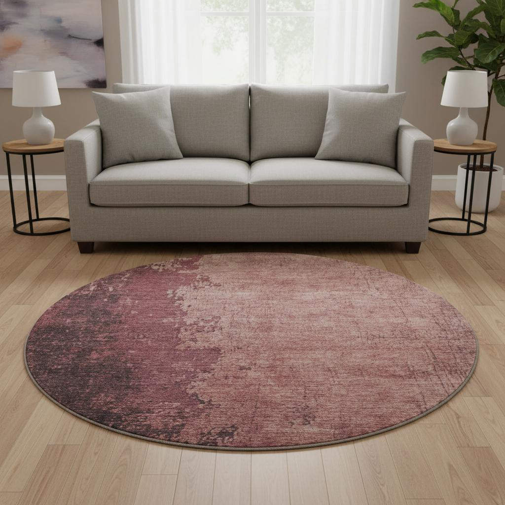 Set an inviting tone in your space with this 8-foot coral and burgundy abstract washable round rug with uv protection. Ideal for spaces with kids and pets, this rug is stain resistant to help repel dirt and spilled liquids. Built to last, this rug crafted from polyester fibers is known for its durability and long lasting appeal. Rugs are a great way to showcase your style, hide imperfections, warm your home and reduce noise. This larger sized, transitional styled rug is ready to create a focal point or statement piece in your room. 96.00-inch h x 96.00-inch w x 0.39-inch d.