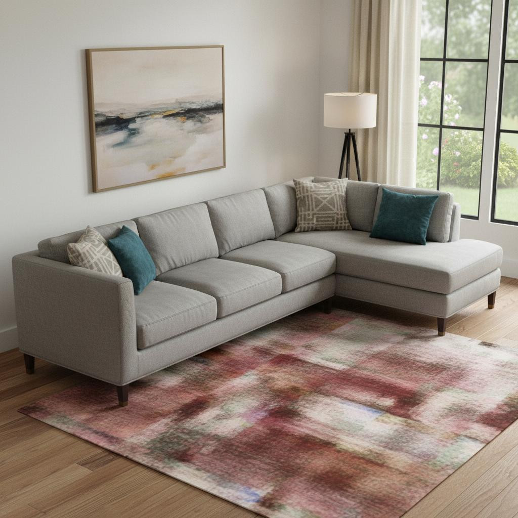 This 9-foot x 12-foot coral and burgundy abstract washable area rug with uv protection, is a great way to add warmth to a room. Ideal for spaces with kids and pets, this rug is stain resistant to help repel dirt and spilled liquids. Built to last, this rug crafted from polyester fibers is known for its durability and long lasting appeal. Rugs are a great way to showcase your style, hide imperfections, warm your home and reduce noise. This larger sized, transitional styled rug is ready to create a focal point or statement piece in your room. 108.00-inch h x 144.00-inch w x 0.39-inch d.