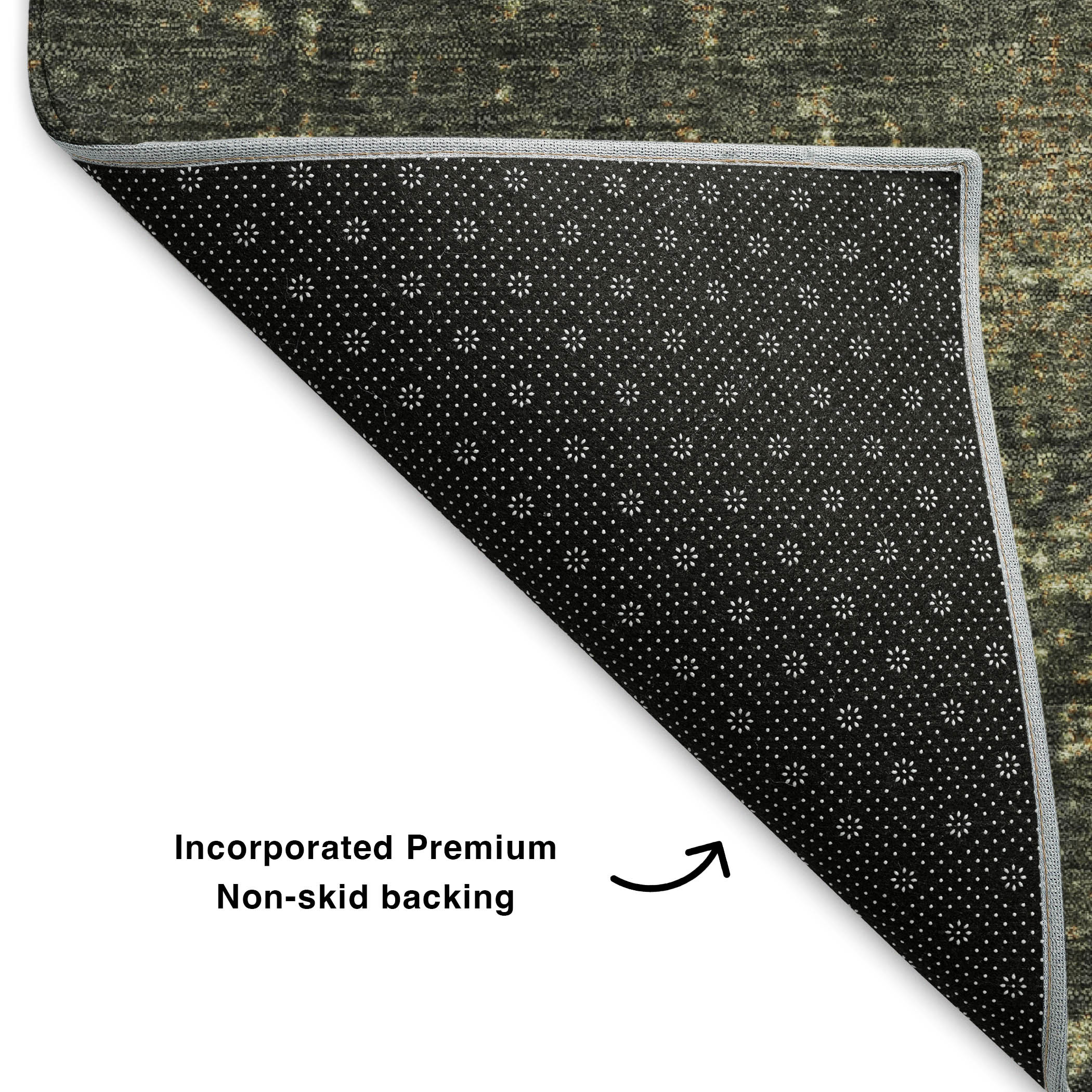 Add great coloration and comfortable texture to your space with this 5-foot x 8-foot olive green and brown abstract washable area rug with uv protection. Ideal for spaces with kids and pets, this rug is stain resistant to help repel dirt and spilled liquids. Built to last, this rug crafted from polyester fibers is known for its durability and long lasting appeal. Rugs are a great way to showcase your style, hide imperfections, warm your home and reduce noise. This larger sized, transitional styled rug is ready to create a focal point or statement piece in your room. 60.00-inch h x 90.00-inch w x 0.39-inch d.