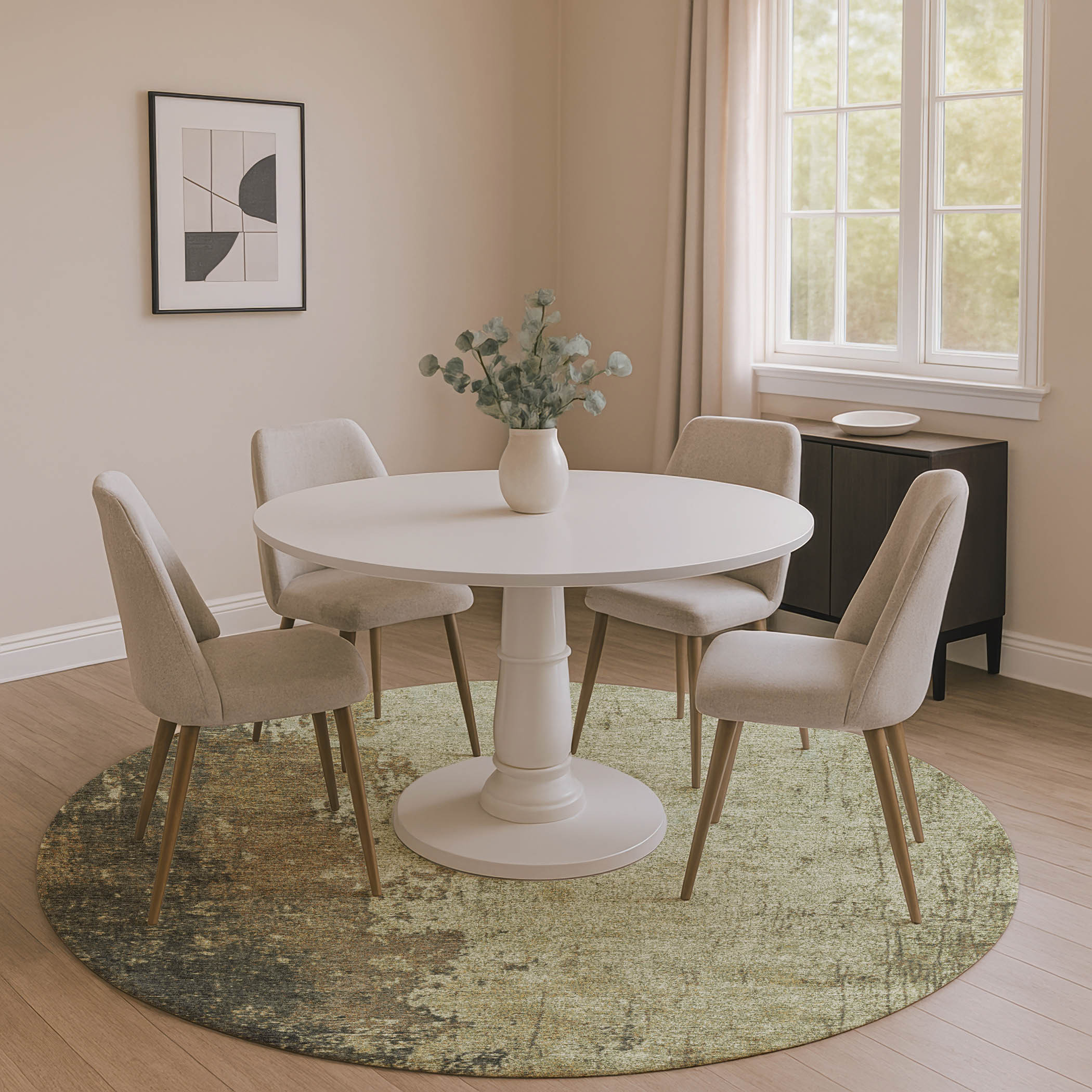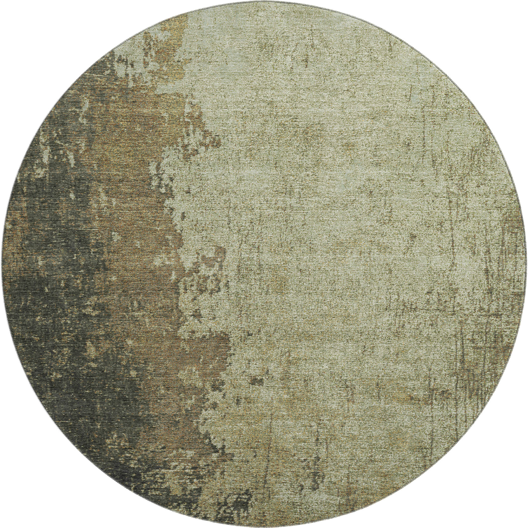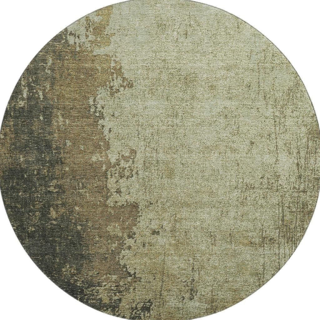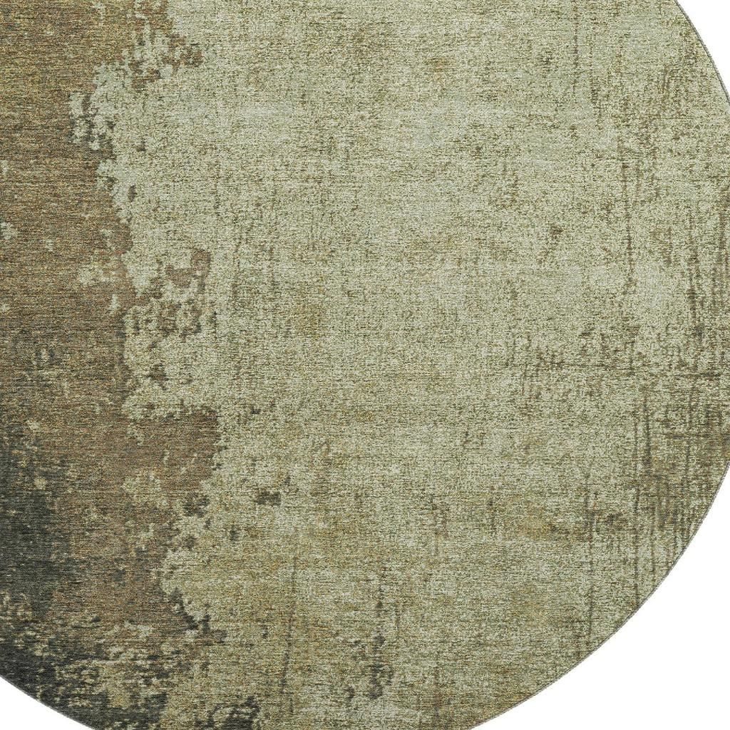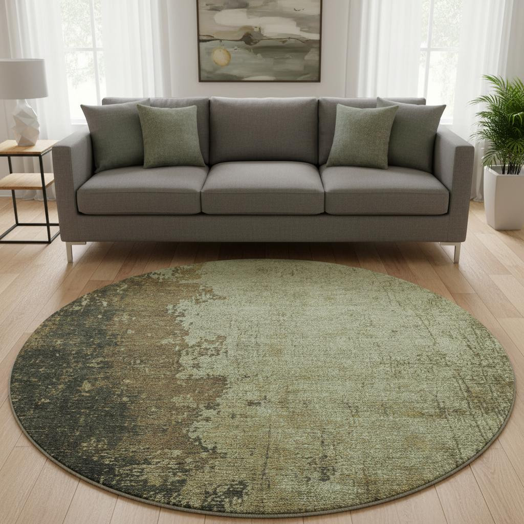 Add great coloration and comfortable texture to your space with this 8-foot olive green and brown abstract washable round rug with uv protection. Ideal for spaces with kids and pets, this rug is stain resistant to help repel dirt and spilled liquids. Built to last, this rug crafted from polyester fibers is known for its durability and long lasting appeal. Rugs are a great way to showcase your style, hide imperfections, warm your home and reduce noise. This larger sized, transitional styled rug is ready to create a focal point or statement piece in your room. 96.00-inch h x 96.00-inch w x 0.39-inch d.