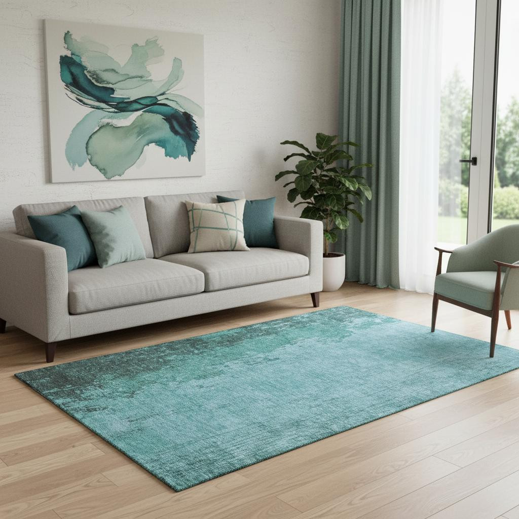 Set an inviting tone in your space with this 5-foot x 8-foot teal and gray abstract washable area rug with uv protection. Ideal for spaces with kids and pets, this rug is stain resistant to help repel dirt and spilled liquids. Built to last, this rug crafted from polyester fibers is known for its durability and long lasting appeal. Rugs are a great way to showcase your style, hide imperfections, warm your home and reduce noise. This larger sized, transitional styled rug is ready to create a focal point or statement piece in your room. 60.00-inch h x 90.00-inch w x 0.39-inch d.
