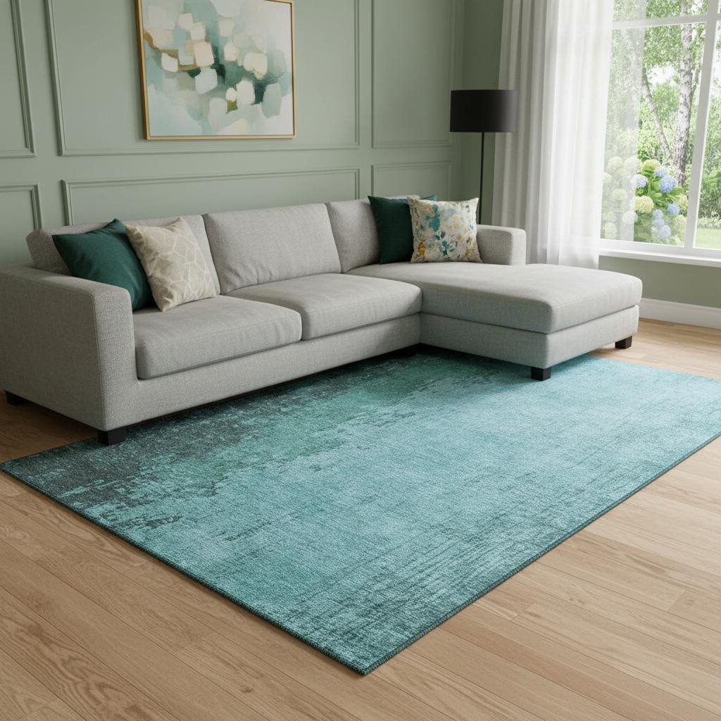 Add great coloration and comfortable texture to your space with this 8-foot x 10-foot teal and gray abstract washable area rug with uv protection. Ideal for spaces with kids and pets, this rug is stain resistant to help repel dirt and spilled liquids. Built to last, this rug crafted from polyester fibers is known for its durability and long lasting appeal. Rugs are a great way to showcase your style, hide imperfections, warm your home and reduce noise. This larger sized, transitional styled rug is ready to create a focal point or statement piece in your room. 96.00-inch h x 120.00-inch w x 0.39-inch d.