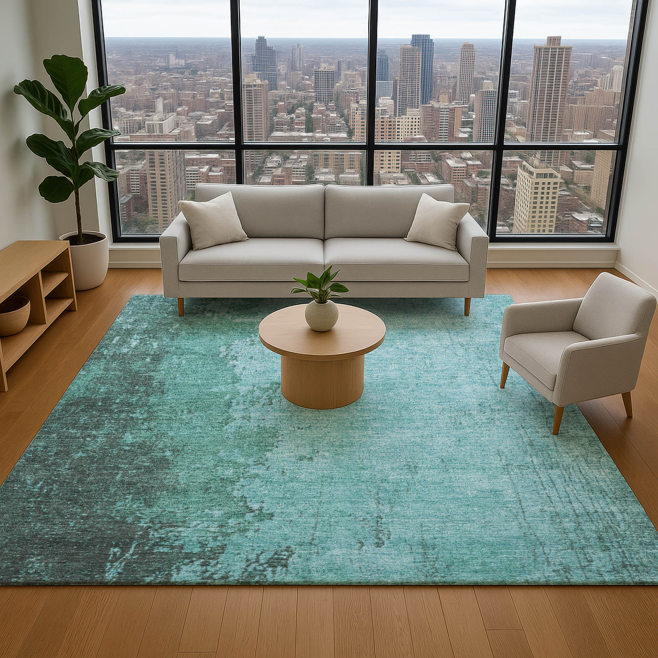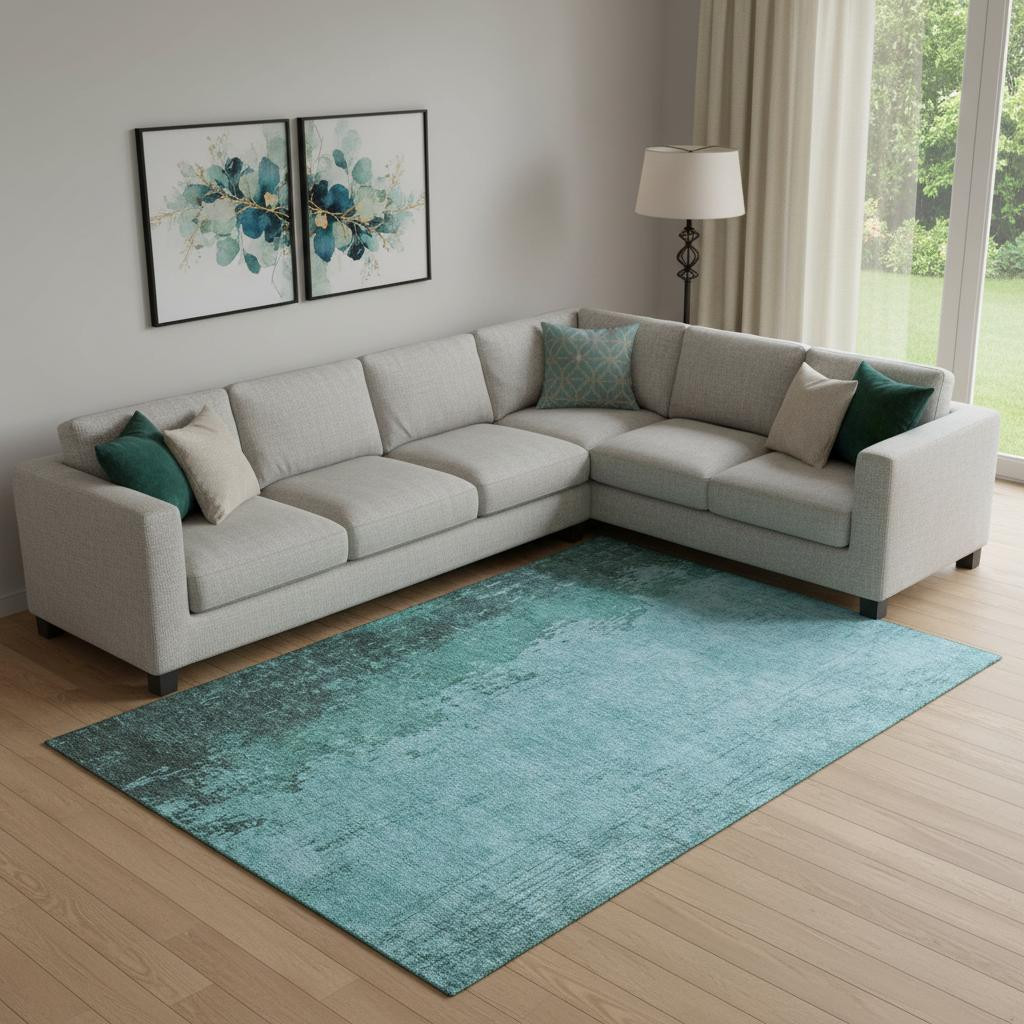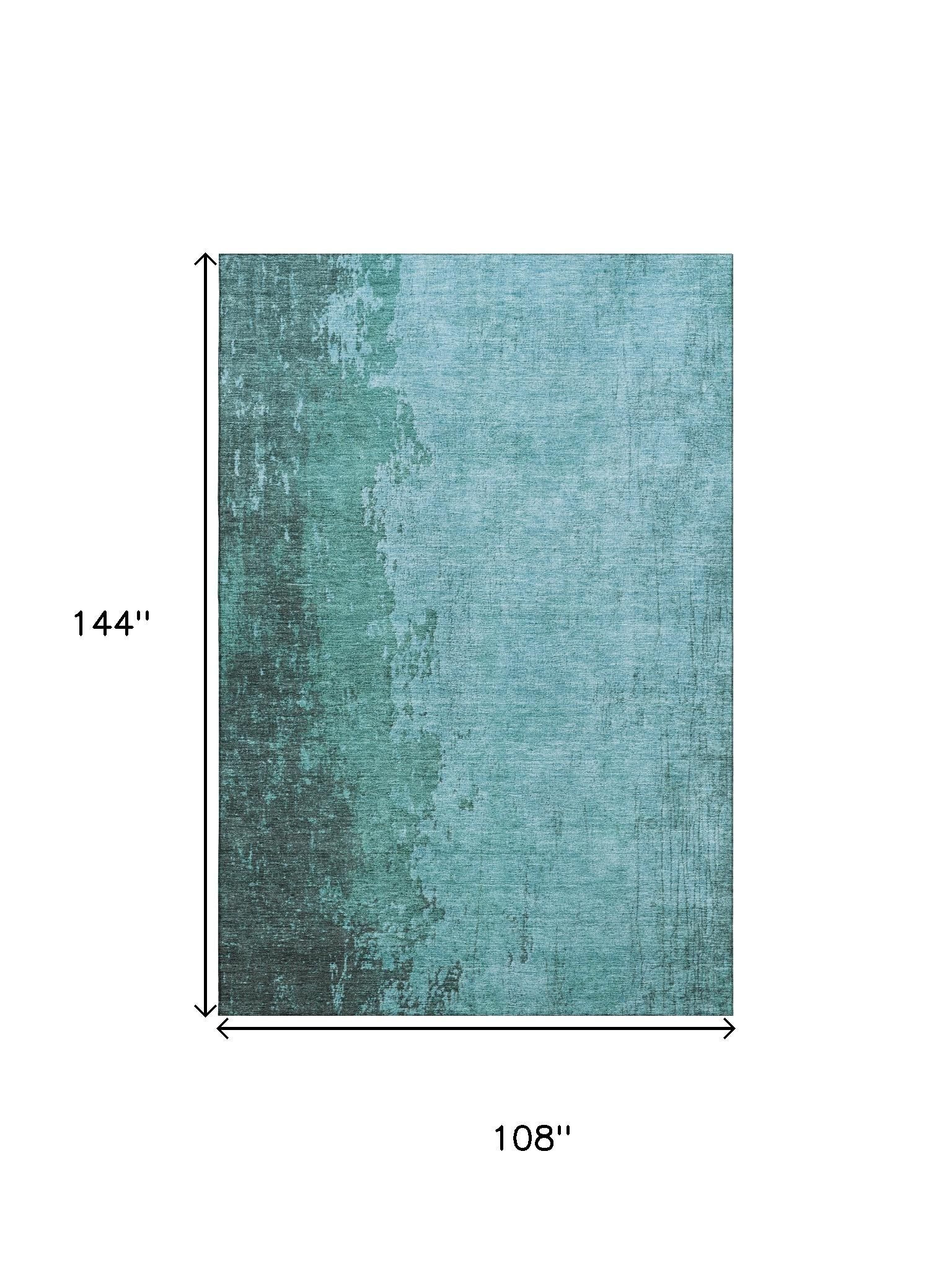 This 9-foot x 12-foot teal and gray abstract washable area rug with uv protection, is a great way to add warmth to a room. Ideal for spaces with kids and pets, this rug is stain resistant to help repel dirt and spilled liquids. Built to last, this rug crafted from polyester fibers is known for its durability and long lasting appeal. Rugs are a great way to showcase your style, hide imperfections, warm your home and reduce noise. This larger sized, transitional styled rug is ready to create a focal point or statement piece in your room. 108.00-inch h x 144.00-inch w x 0.39-inch d.