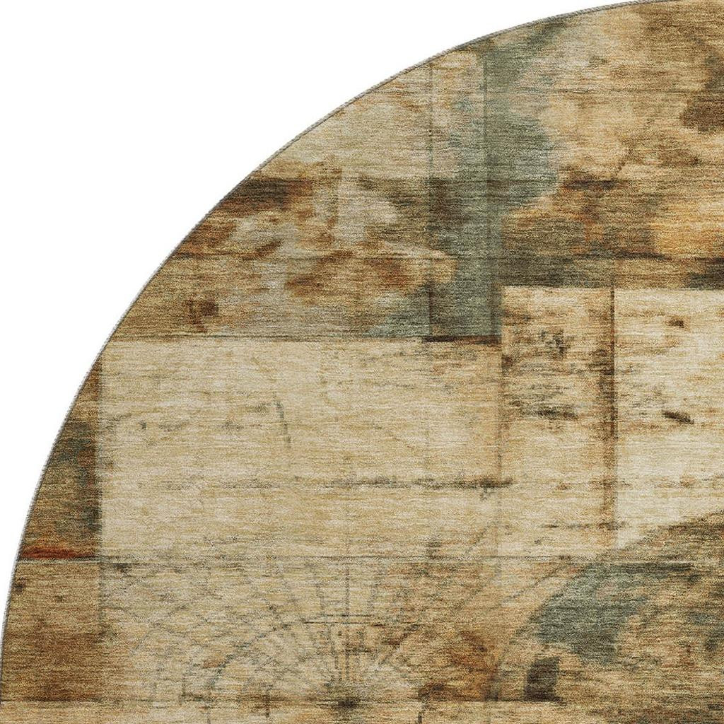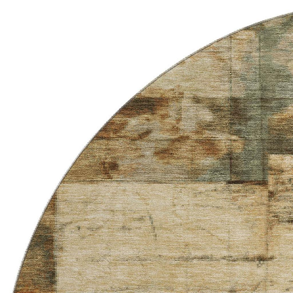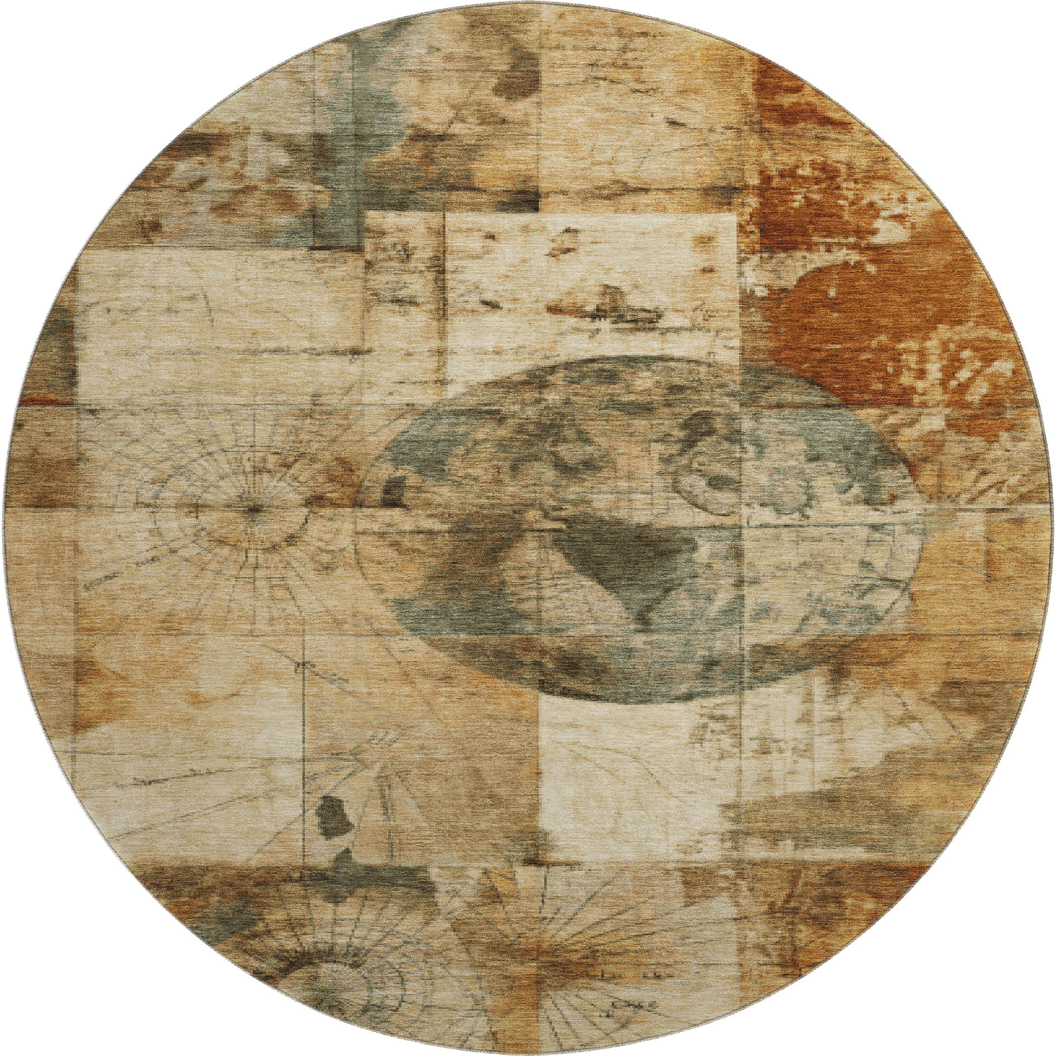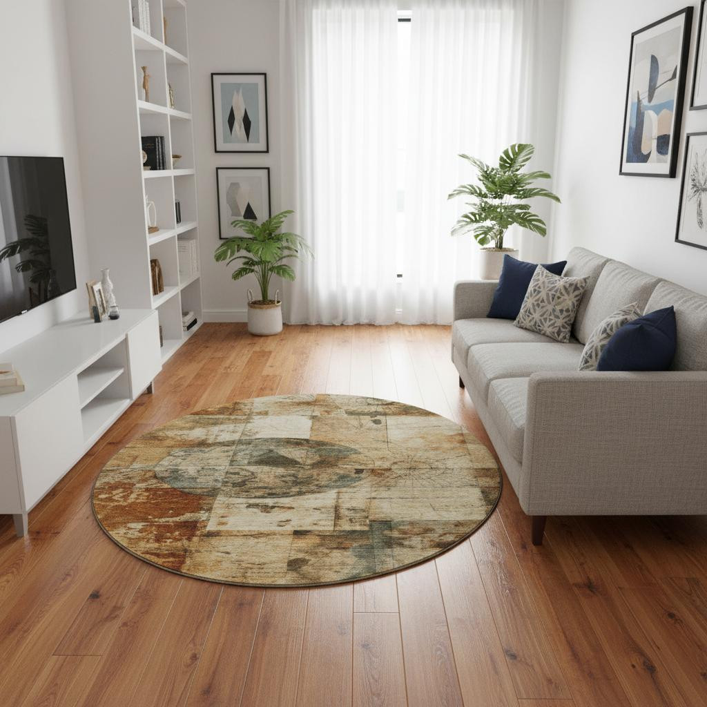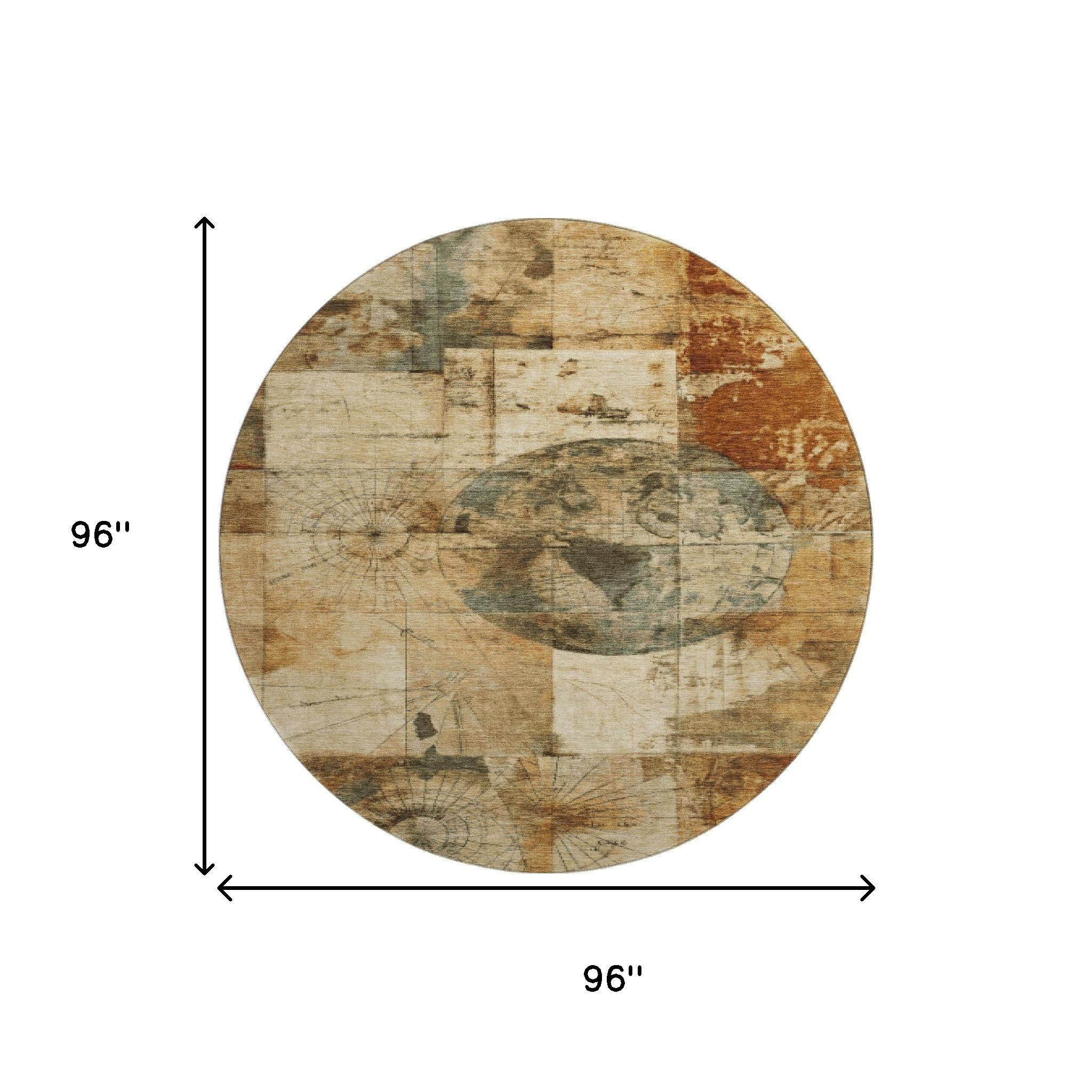 Set an inviting tone in your space with this 8-foot beige gray and rust geometric washable round rug with uv protection. Ideal for spaces with kids and pets, this rug is stain resistant to help repel dirt and spilled liquids. Built to last, this rug crafted from polyester fibers is known for its durability and long lasting appeal. Rugs are a great way to showcase your style, hide imperfections, warm your home and reduce noise. This larger sized, transitional styled rug is ready to create a focal point or statement piece in your room. 96.00-inch h x 96.00-inch w x 0.39-inch d.