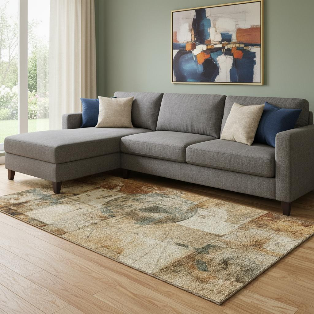 Add great coloration and comfortable texture to your space with this 8-foot x 10-foot beige gray and rust geometric washable area rug with uv protection. Ideal for spaces with kids and pets, this rug is stain resistant to help repel dirt and spilled liquids. Built to last, this rug crafted from polyester fibers is known for its durability and long lasting appeal. Rugs are a great way to showcase your style, hide imperfections, warm your home and reduce noise. This larger sized, transitional styled rug is ready to create a focal point or statement piece in your room. 96.00-inch h x 120.00-inch w x 0.39-inch d.