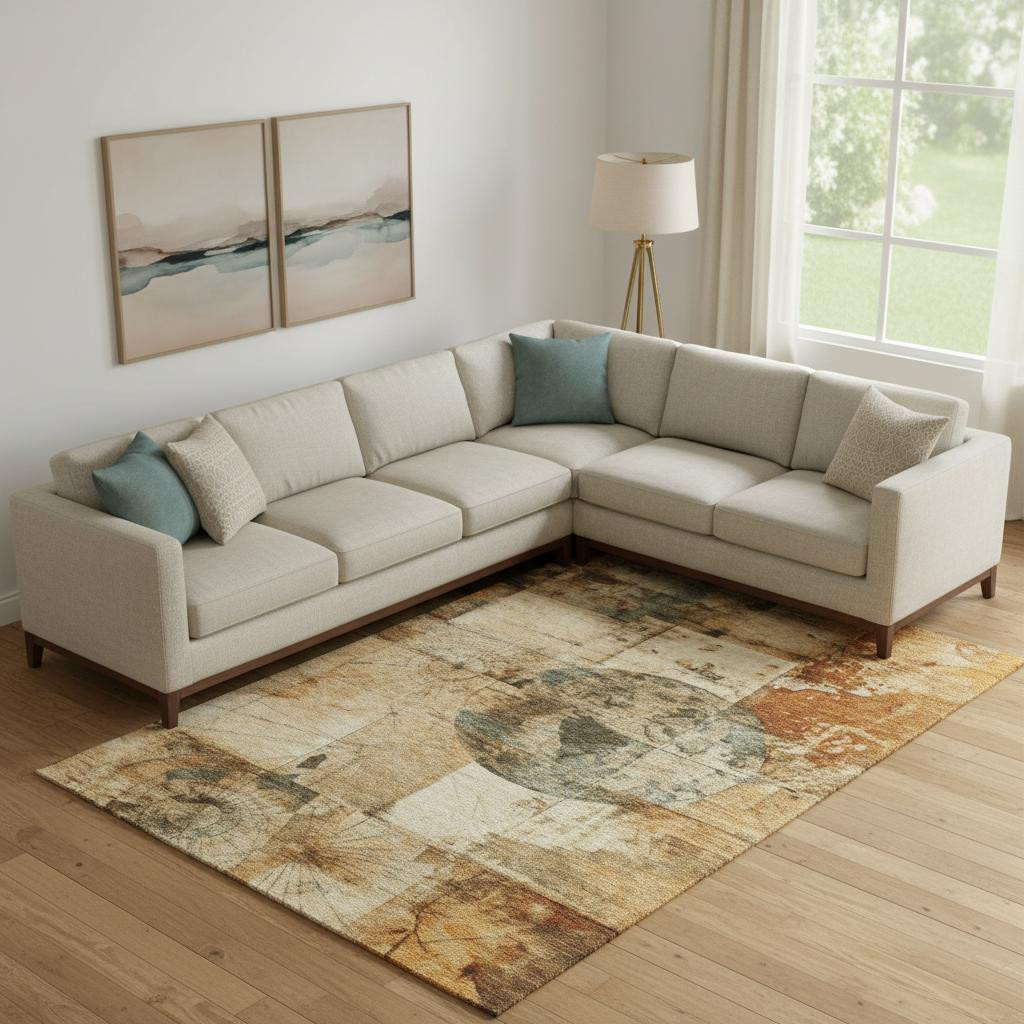 This 10-foot x 14-foot beige gray and rust geometric washable area rug with uv protection, is a great way to add warmth to a room. Ideal for spaces with kids and pets, this rug is stain resistant to help repel dirt and spilled liquids. Built to last, this rug crafted from polyester fibers is known for its durability and long lasting appeal. Rugs are a great way to showcase your style, hide imperfections, warm your home and reduce noise. This larger sized, transitional styled rug is ready to create a focal point or statement piece in your room. 120.00-inch h x 168.00-inch w x 0.39-inch d.