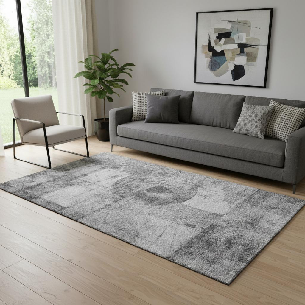 Set an inviting tone in your space with this 5-foot x 8-foot gray and silver geometric washable area rug with uv protection. Ideal for spaces with kids and pets, this rug is stain resistant to help repel dirt and spilled liquids. Built to last, this rug crafted from polyester fibers is known for its durability and long lasting appeal. Rugs are a great way to showcase your style, hide imperfections, warm your home and reduce noise. This larger sized, transitional styled rug is ready to create a focal point or statement piece in your room. 60.00-inch h x 90.00-inch w x 0.39-inch d.