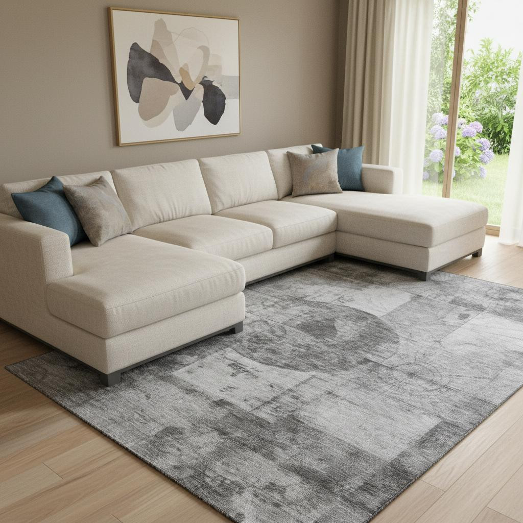 This 8-foot x 10-foot gray and silver geometric washable area rug with uv protection, is a great way to add warmth to a room. Ideal for spaces with kids and pets, this rug is stain resistant to help repel dirt and spilled liquids. Built to last, this rug crafted from polyester fibers is known for its durability and long lasting appeal. Rugs are a great way to showcase your style, hide imperfections, warm your home and reduce noise. This larger sized, transitional styled rug is ready to create a focal point or statement piece in your room. 96.00-inch h x 120.00-inch w x 0.39-inch d.
