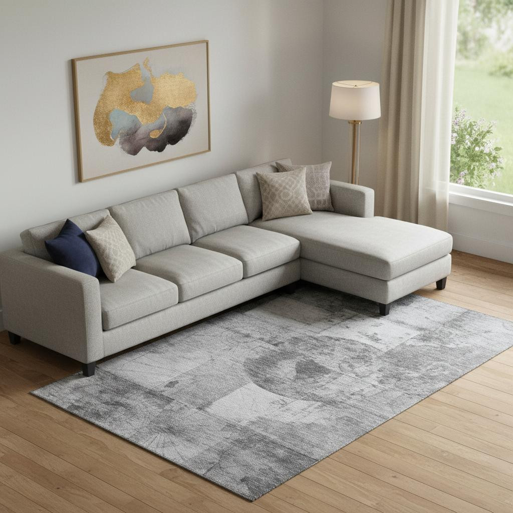 Set an inviting tone in your space with this 9-foot x 12-foot gray and silver geometric washable area rug with uv protection. Ideal for spaces with kids and pets, this rug is stain resistant to help repel dirt and spilled liquids. Built to last, this rug crafted from polyester fibers is known for its durability and long lasting appeal. Rugs are a great way to showcase your style, hide imperfections, warm your home and reduce noise. This larger sized, transitional styled rug is ready to create a focal point or statement piece in your room. 108.00-inch h x 144.00-inch w x 0.39-inch d.