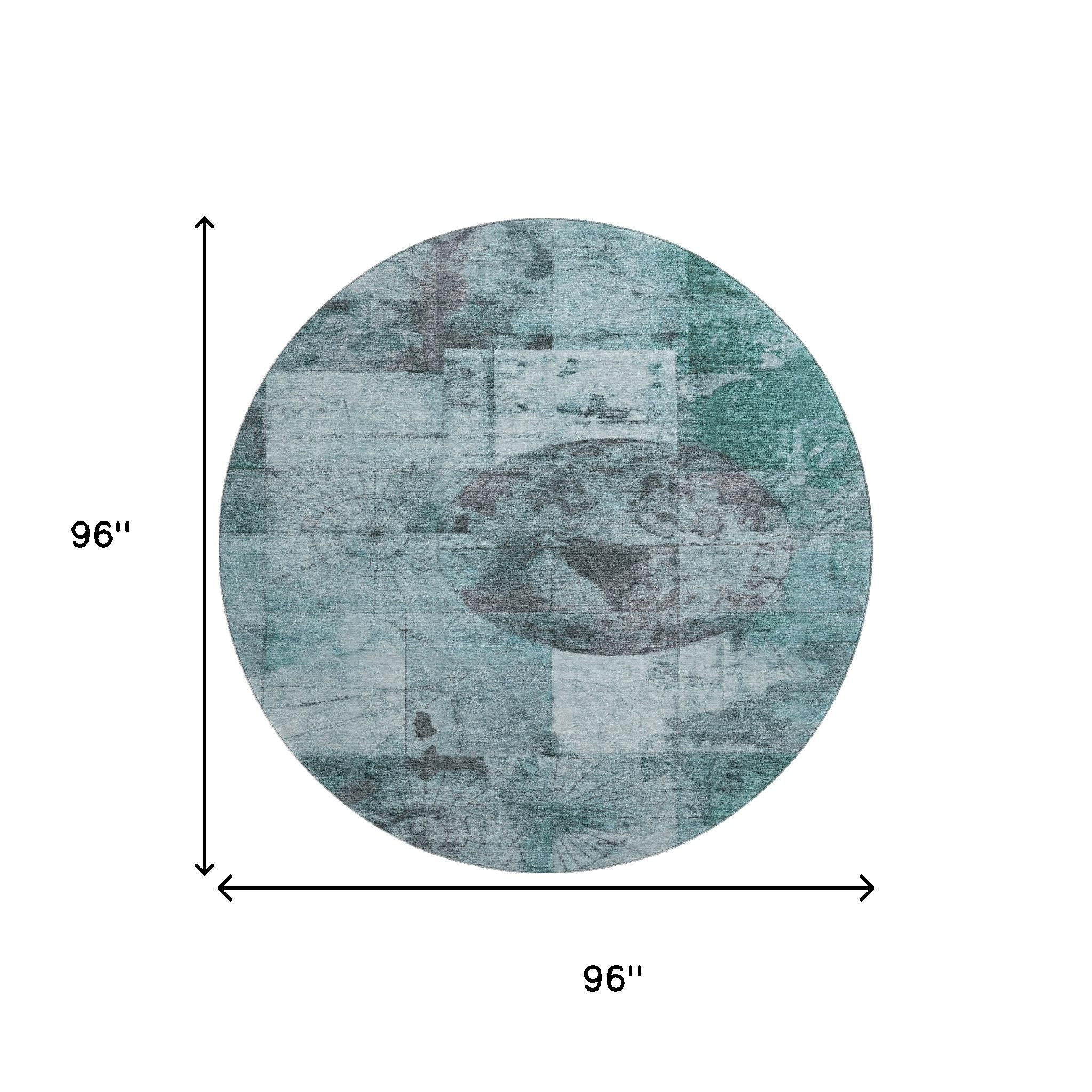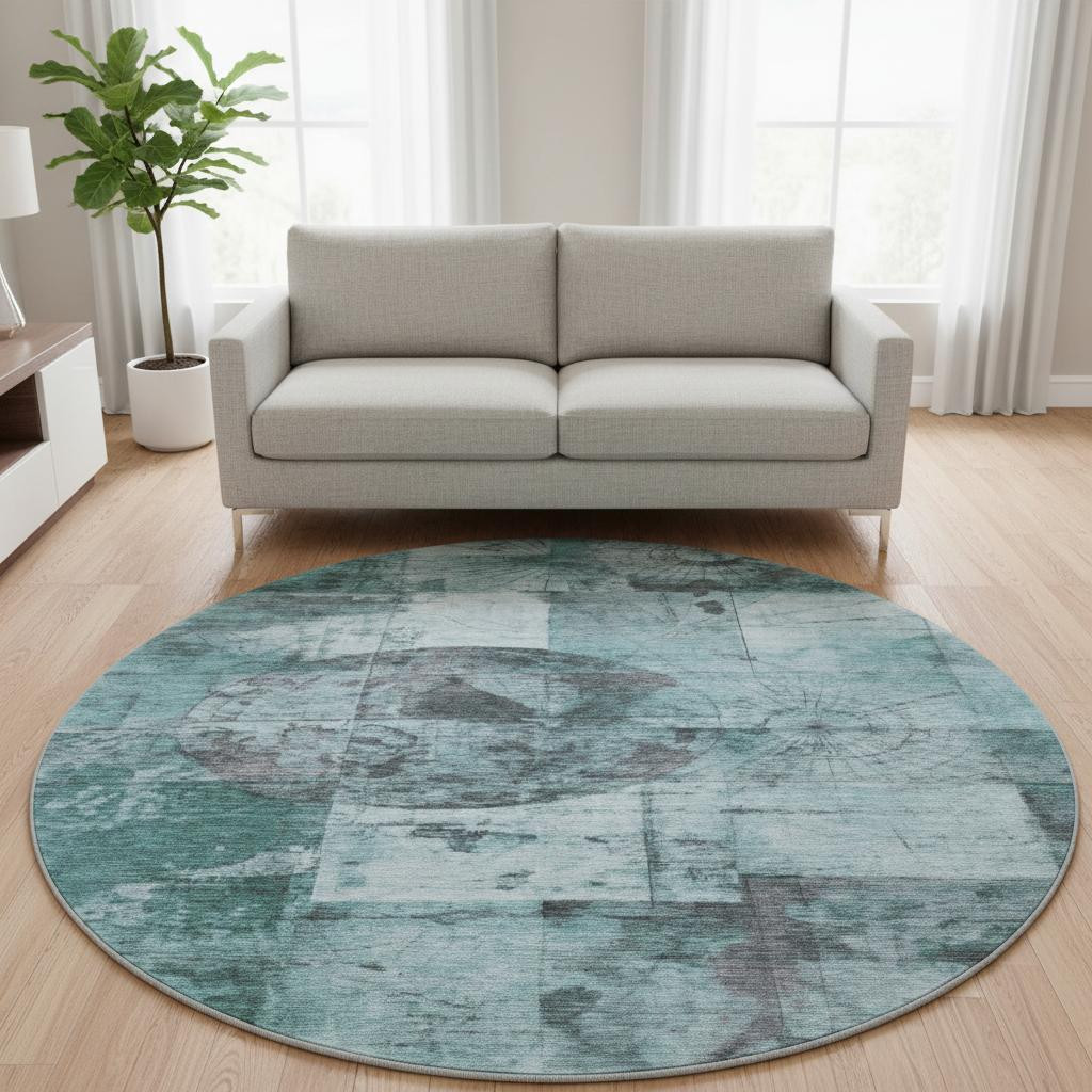 Add great coloration and comfortable texture to your space with this 8-foot teal and gray geometric washable round rug with uv protection. Ideal for spaces with kids and pets, this rug is stain resistant to help repel dirt and spilled liquids. Built to last, this rug crafted from polyester fibers is known for its durability and long lasting appeal. Rugs are a great way to showcase your style, hide imperfections, warm your home and reduce noise. This larger sized, transitional styled rug is ready to create a focal point or statement piece in your room. 96.00-inch h x 96.00-inch w x 0.39-inch d.