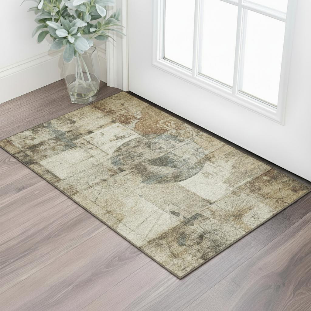 Add some artistry to your room with this 3-foot x 5-foot taupe gray and beige geometric washable area rug with uv protection. Ideal for spaces with kids and pets, this rug is stain resistant to help repel dirt and spilled liquids. Built to last, this rug crafted from polyester fibers is known for its durability and long lasting appeal. Rugs are a great way to showcase your style, hide imperfections, warm your home and reduce noise. This smaller sized, transitional styled rug is just what you need for your walkway, bedside, in front of door, cabinet, refrigerator, or chair. 36.00-inch h x 60.00-inch w x 0.39-inch d.