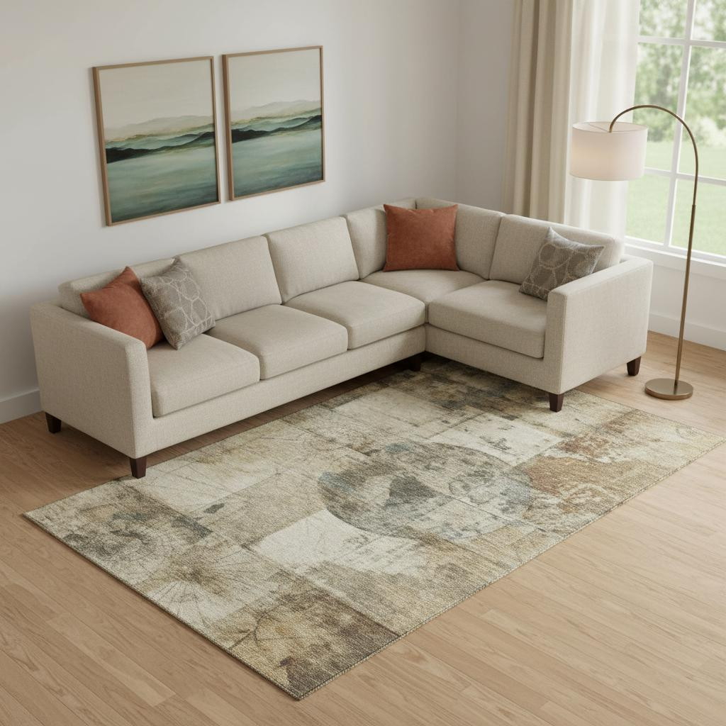 Add some artistry to your room with this 9-foot x 12-foot taupe gray and beige geometric washable area rug with uv protection. Ideal for spaces with kids and pets, this rug is stain resistant to help repel dirt and spilled liquids. Built to last, this rug crafted from polyester fibers is known for its durability and long lasting appeal. Rugs are a great way to showcase your style, hide imperfections, warm your home and reduce noise. This larger sized, transitional styled rug is ready to create a focal point or statement piece in your room. 108.00-inch h x 144.00-inch w x 0.39-inch d.