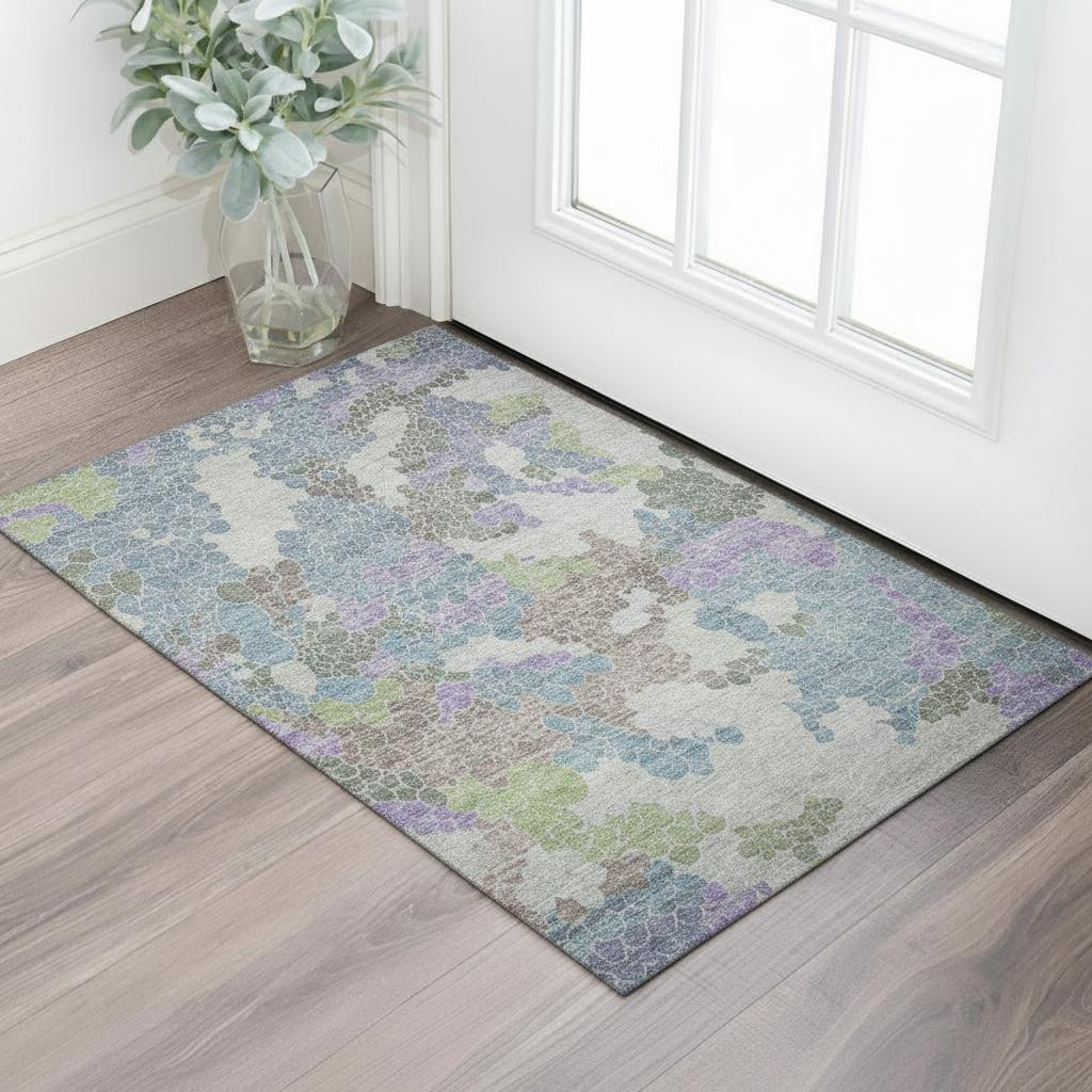 Set an inviting tone in your space with this 3-foot x 5-foot blue green and lavender geometric washable area rug with uv protection. Ideal for spaces with kids and pets, this rug is stain resistant to help repel dirt and spilled liquids. Built to last, this rug crafted from polyester fibers is known for its durability and long lasting appeal. Rugs are a great way to showcase your style, hide imperfections, warm your home and reduce noise. This smaller sized, transitional styled rug is just what you need for your walkway, bedside, in front of door, cabinet, refrigerator, or chair. 36.00-inch h x 60.00-inch w x 0.39-inch d.