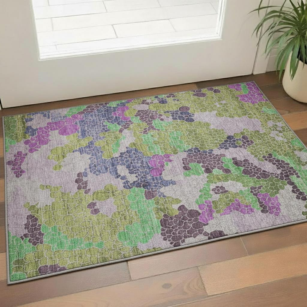 Add great coloration and comfortable texture to your space with this 3-foot x 5-foot fern green eggplant and blush geometric washable area rug with uv protection. Ideal for spaces with kids and pets, this rug is stain resistant to help repel dirt and spilled liquids. Built to last, this rug crafted from polyester fibers is known for its durability and long lasting appeal. Rugs are a great way to showcase your style, hide imperfections, warm your home and reduce noise. This smaller sized, transitional styled rug is just what you need for your walkway, bedside, in front of door, cabinet, refrigerator, or chair. 36.00-inch h x 60.00-inch w x 0.39-inch d.