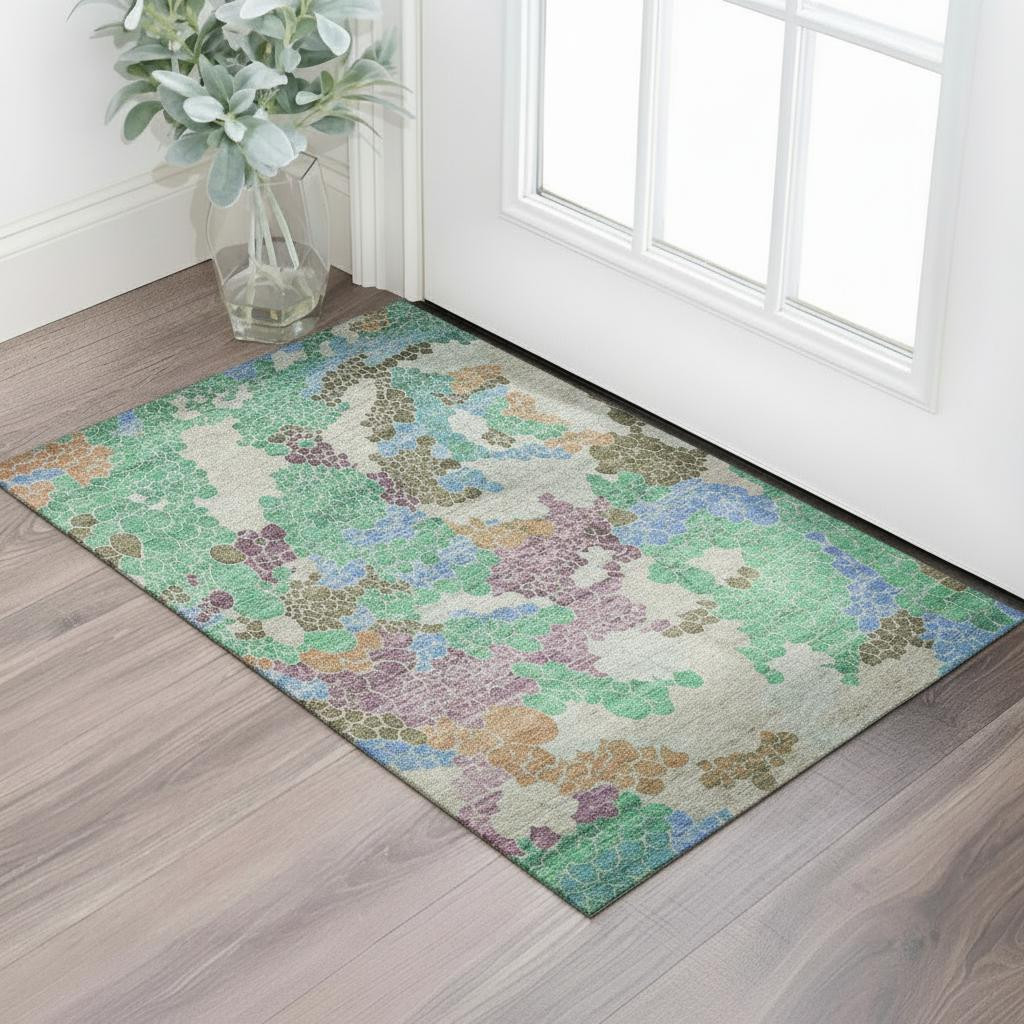 Add some artistry to your room with this 3-foot x 5-foot green copper and blue geometric washable area rug with uv protection. Ideal for spaces with kids and pets, this rug is stain resistant to help repel dirt and spilled liquids. Built to last, this rug crafted from polyester fibers is known for its durability and long lasting appeal. Rugs are a great way to showcase your style, hide imperfections, warm your home and reduce noise. This smaller sized, transitional styled rug is just what you need for your walkway, bedside, in front of door, cabinet, refrigerator, or chair. 36.00-inch h x 60.00-inch w x 0.39-inch d.