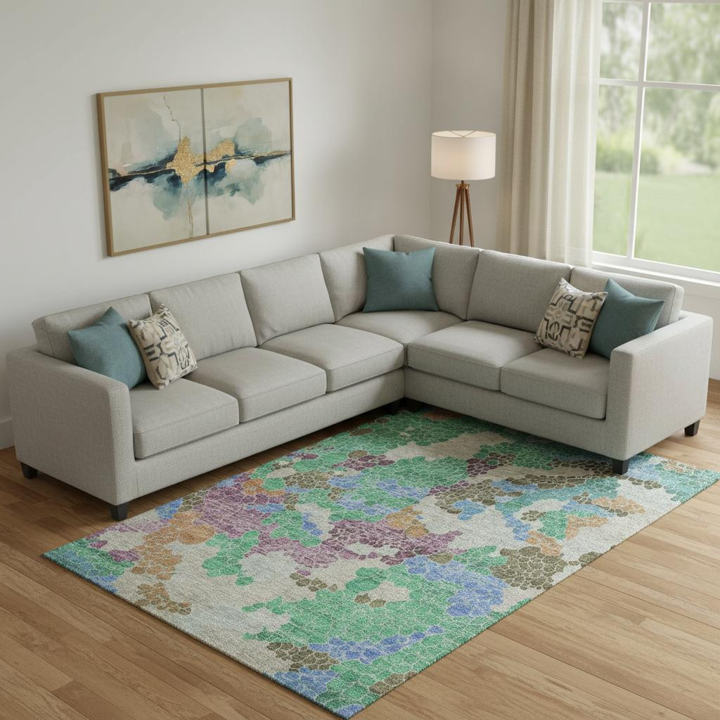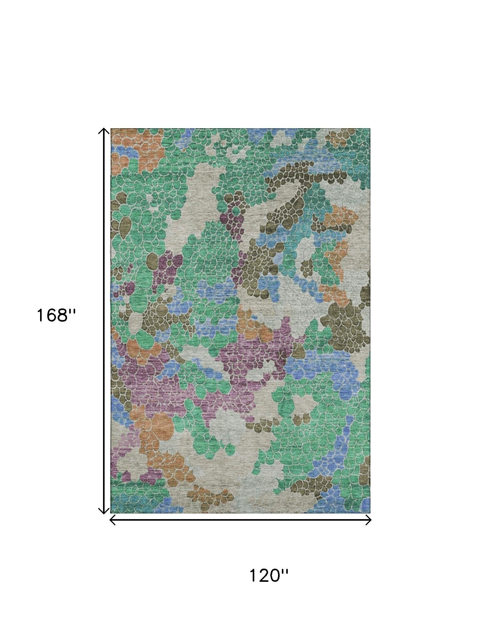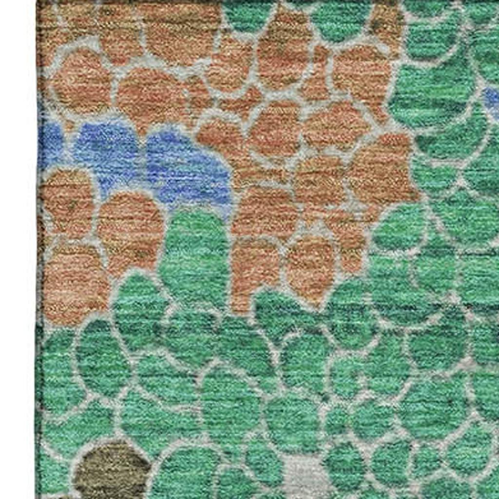 This 10-foot x 14-foot green copper and blue geometric washable area rug with uv protection, is a great way to add warmth to a room. Ideal for spaces with kids and pets, this rug is stain resistant to help repel dirt and spilled liquids. Built to last, this rug crafted from polyester fibers is known for its durability and long lasting appeal. Rugs are a great way to showcase your style, hide imperfections, warm your home and reduce noise. This larger sized, transitional styled rug is ready to create a focal point or statement piece in your room. 120.00-inch h x 168.00-inch w x 0.39-inch d.