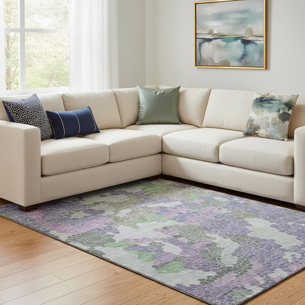 Add great coloration and comfortable texture to your space with this 8-foot x 10-foot purple gray and green geometric washable area rug with uv protection. Ideal for spaces with kids and pets, this rug is stain resistant to help repel dirt and spilled liquids. Built to last, this rug crafted from polyester fibers is known for its durability and long lasting appeal. Rugs are a great way to showcase your style, hide imperfections, warm your home and reduce noise. This larger sized, transitional styled rug is ready to create a focal point or statement piece in your room. 96.00-inch h x 120.00-inch w x 0.39-inch d.