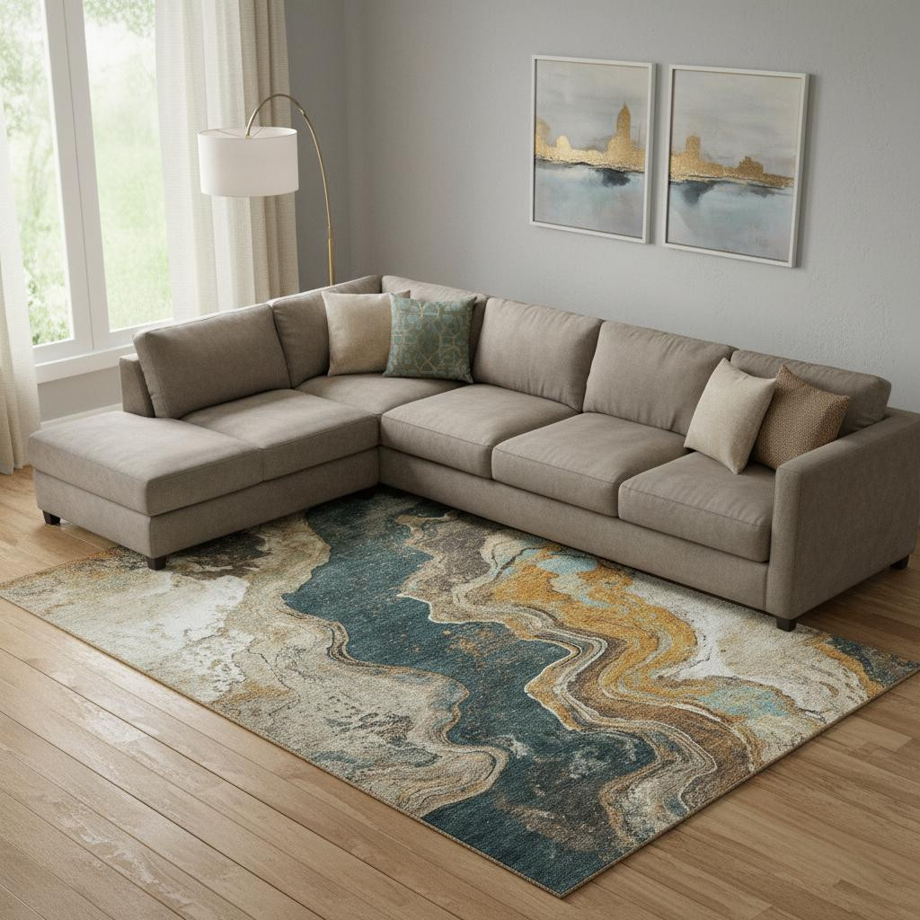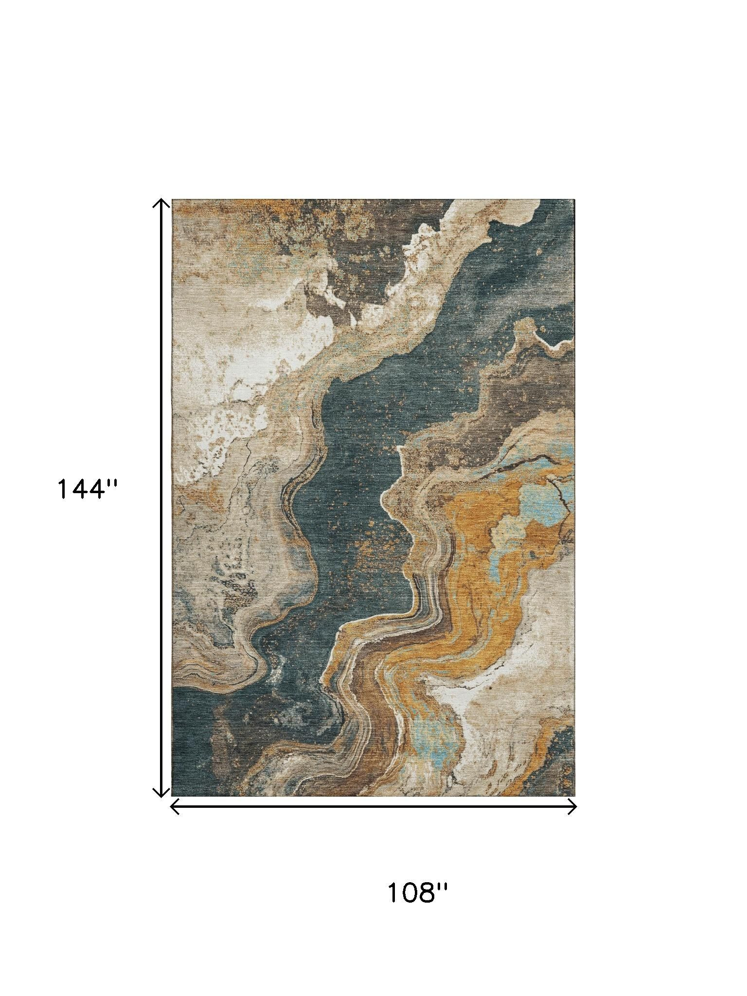 This 9-foot x 12-foot wheat gray and ivory abstract washable area rug with uv protection, is a great way to add warmth to a room. Ideal for spaces with kids and pets, this rug is stain resistant to help repel dirt and spilled liquids. Built to last, this rug crafted from polyester fibers is known for its durability and long lasting appeal. Rugs are a great way to showcase your style, hide imperfections, warm your home and reduce noise. This larger sized, transitional styled rug is ready to create a focal point or statement piece in your room. 108.00-inch h x 144.00-inch w x 0.39-inch d.