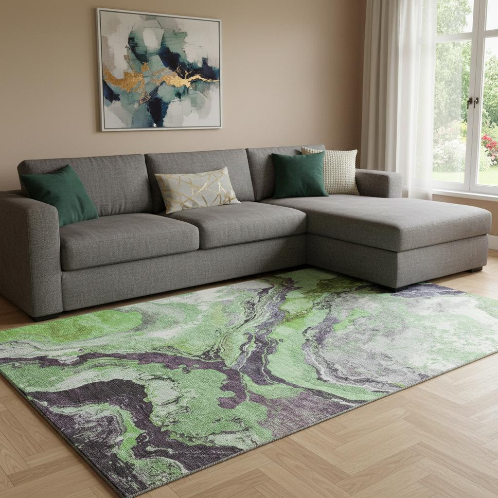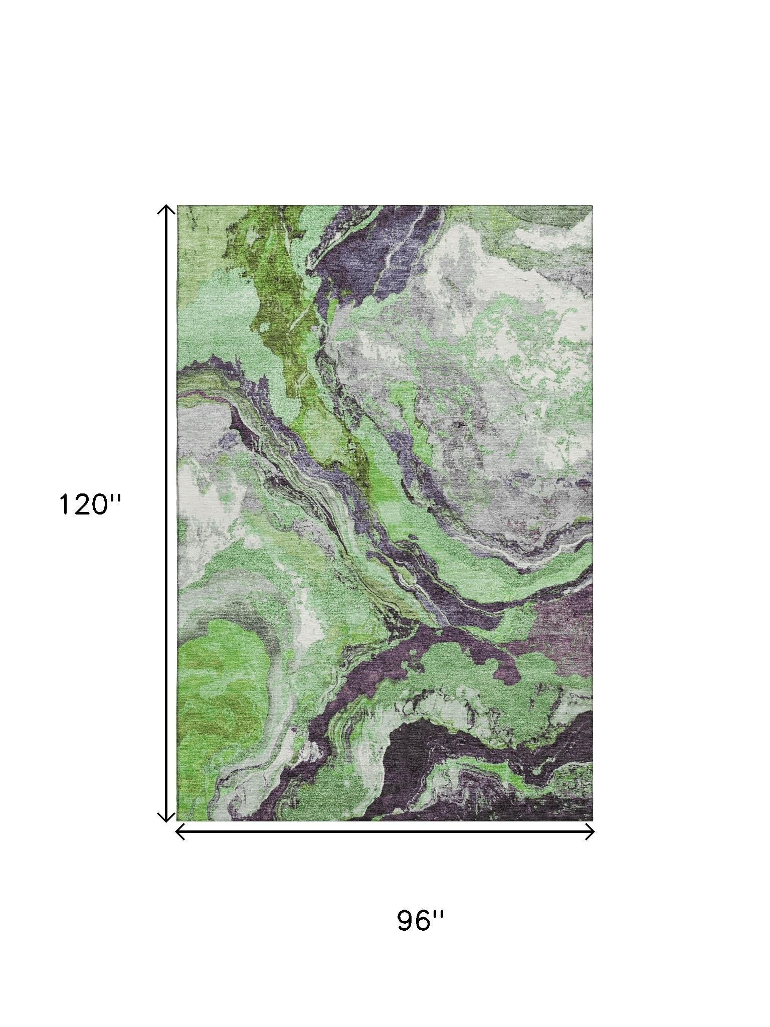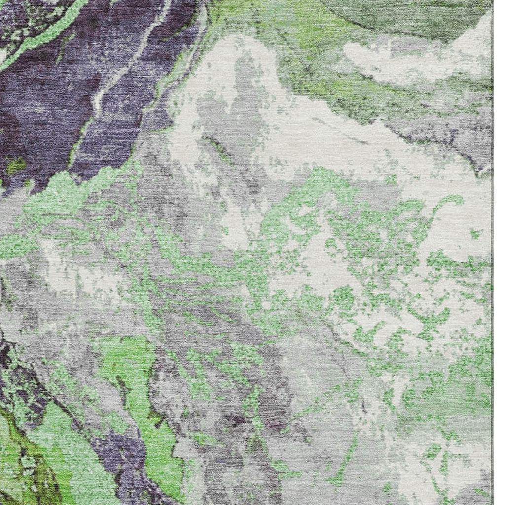 Set an inviting tone in your space with this 8-foot x 10-foot green lavender and ivory abstract washable area rug with uv protection. Ideal for spaces with kids and pets, this rug is stain resistant to help repel dirt and spilled liquids. Built to last, this rug crafted from polyester fibers is known for its durability and long lasting appeal. Rugs are a great way to showcase your style, hide imperfections, warm your home and reduce noise. This larger sized, transitional styled rug is ready to create a focal point or statement piece in your room. 96.00-inch h x 120.00-inch w x 0.39-inch d.